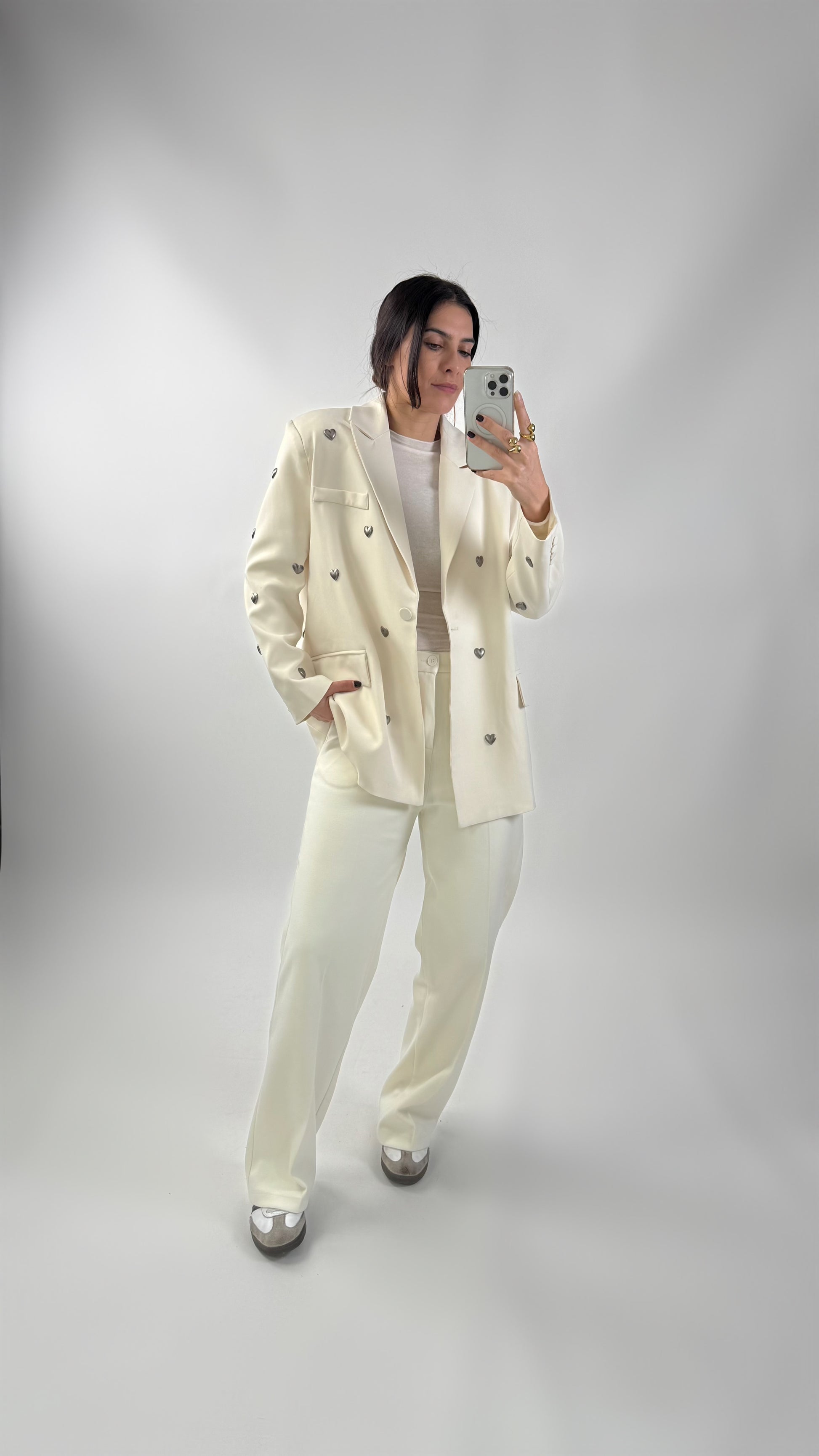 نحن نقدم سترة أيسو، سترة كبيرة الحجم تجمع بين الأناقة والأسلوب العصري. مع قصة مستقيمة وأكتاف منظمة، توفر هذه السترة إطلالة راقية ومعاصرة. يتضمن التصميم جيوبًا عملية وبطانة كاملة لمزيد من الراحة واللمسة النهائية الخالية من العيوب. تضيف تفاصيل القلب المرصعة الفريدة لمسة من السحر والتميز، مما يجعل سترة أيسو قطعة مميزة في خزانة ملابسك. فستان بالمقاسات S الى L، مثالي لإنشاء إطلالات من المكتب إلى المناسبات الخاصة مع لمسة من الأصالة.
