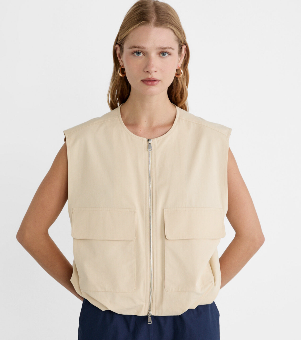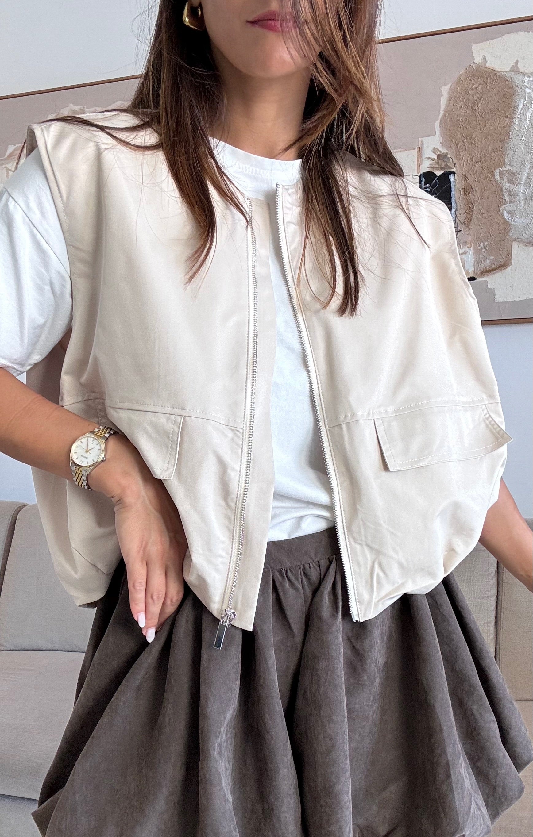 سترة من القماش المقاوم للماء، مبطنة، موديل كبير الحجم مع سحاب للإغلاق. انها تحتوي على جيوب. إنه مقاس واحد يناسب الجميع، يناسب حتى XL.