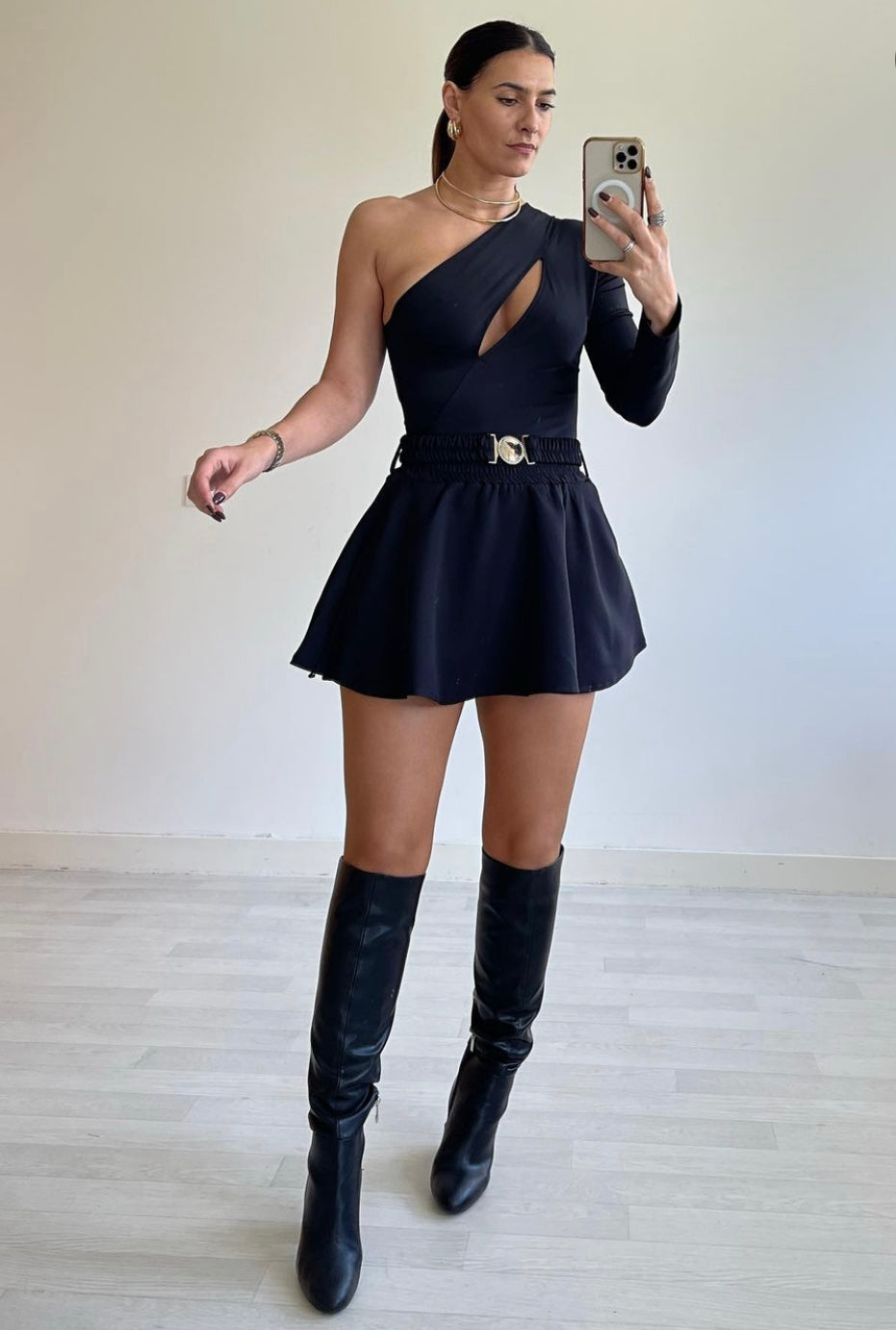 تنورة قصيرة مع شورت مبطن. يحتوي على حزام خصر مطاطي وحزام متضمن. فستان S، M و L صغير