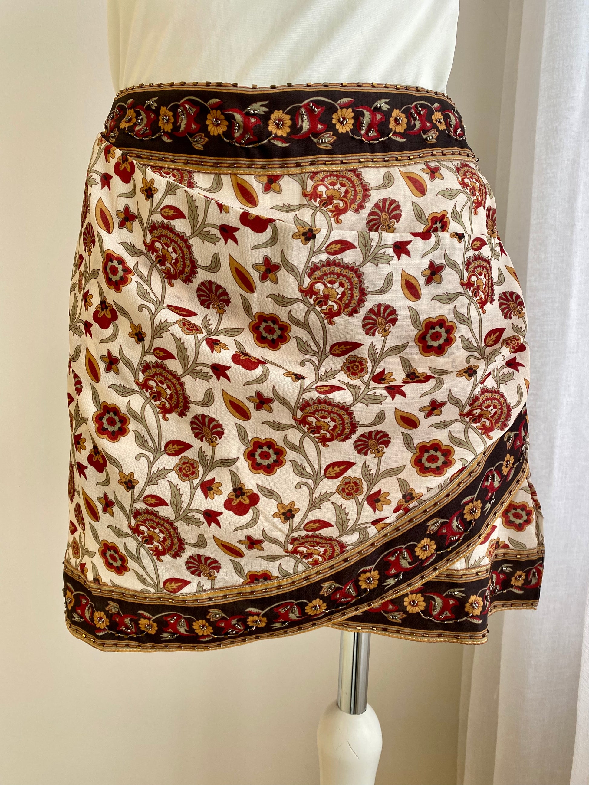 تنورة ملفوفة مع شورت غير مرئي. إنه مبطن بالكامل ويتم تثبيته بسحاب جانبي غير مرئي.