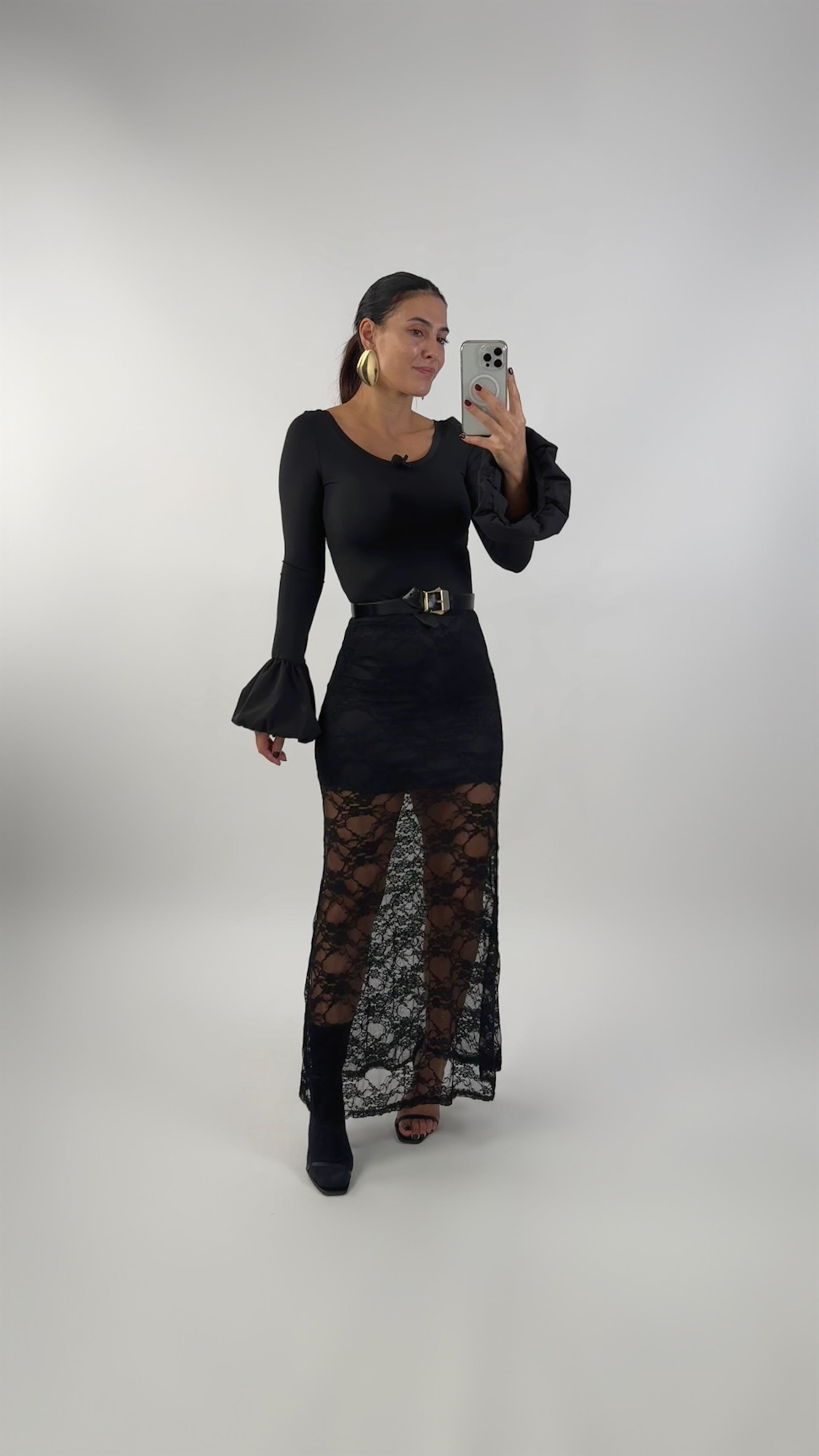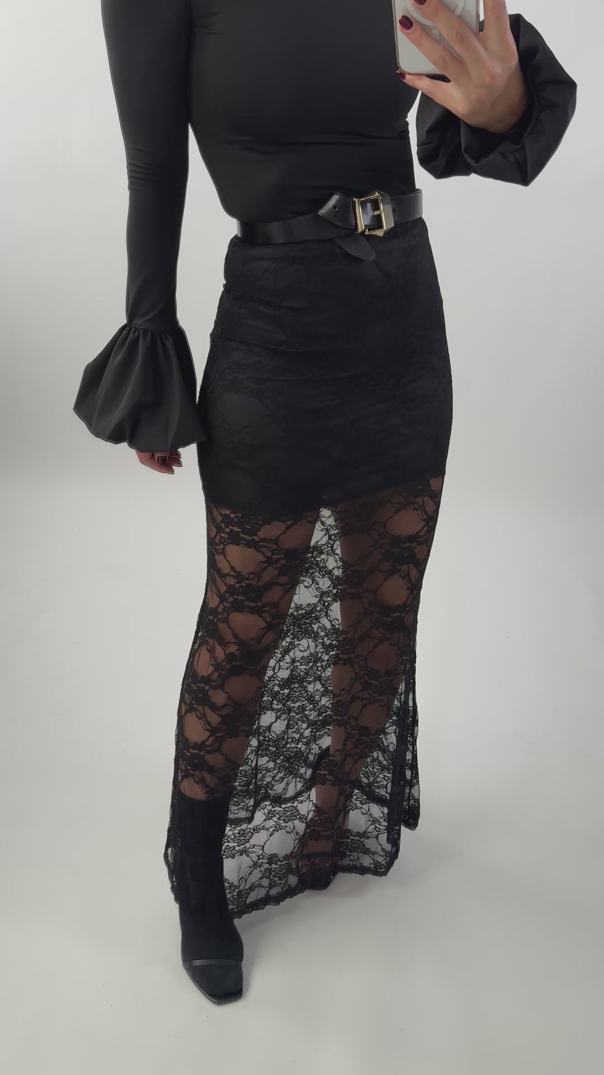 تنورة من الدانتيلتنورة ميدي من الدانتيل مع بطانة أقصر. يحتوي على مرونة عند الخصر.
