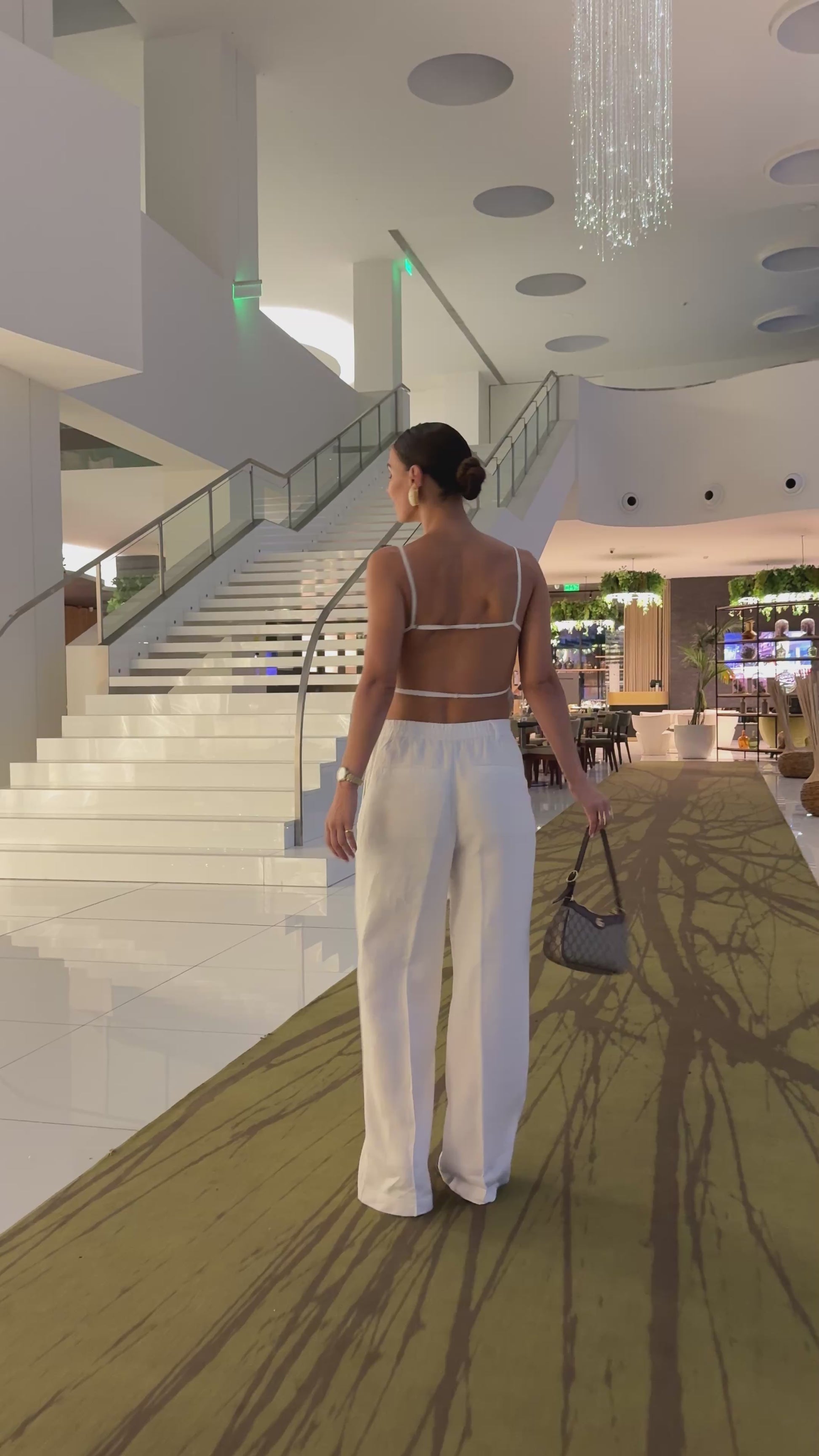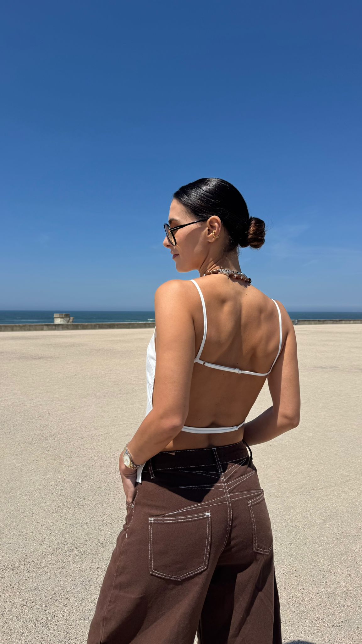 بلوزة بيضاء مفتوحة الظهر. إنها القطعة المثالية لمن تبحث عن الأناقة والشخصية المميزة. بتصميمها البسيط والمبطن وظهرها المفتوح بالكامل، تأتي بحزامين قابلين للتعديل مع مشابك لضمان ملاءمة وراحة أفضل. مثالية لإطلالات عصرية، جريئة، أو كاجوال، حيث تتكيف مع شكل جسمك وأسلوبك.