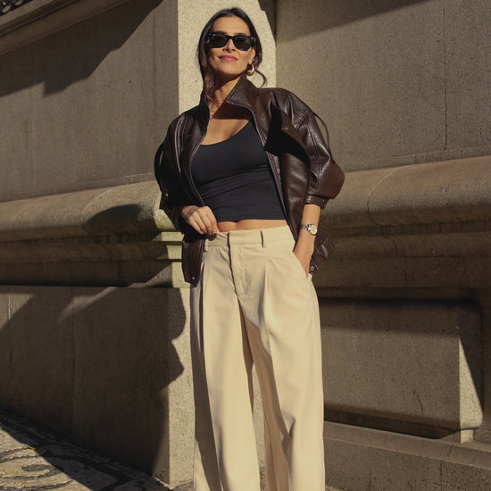 Wide-leg corduroy trousers with front pockets and a back pocket effect. They fasten with... Zipper and invisible hook-and-eye closure. Front pleat detail. Runs small.