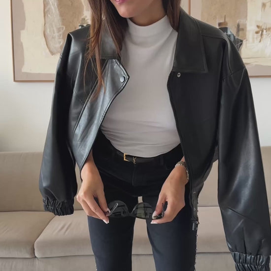 High-waisted pants with silver studs on the sides. Dark brown, ideal for a casual, modern look. Comfortable, versatile, and stretchy.