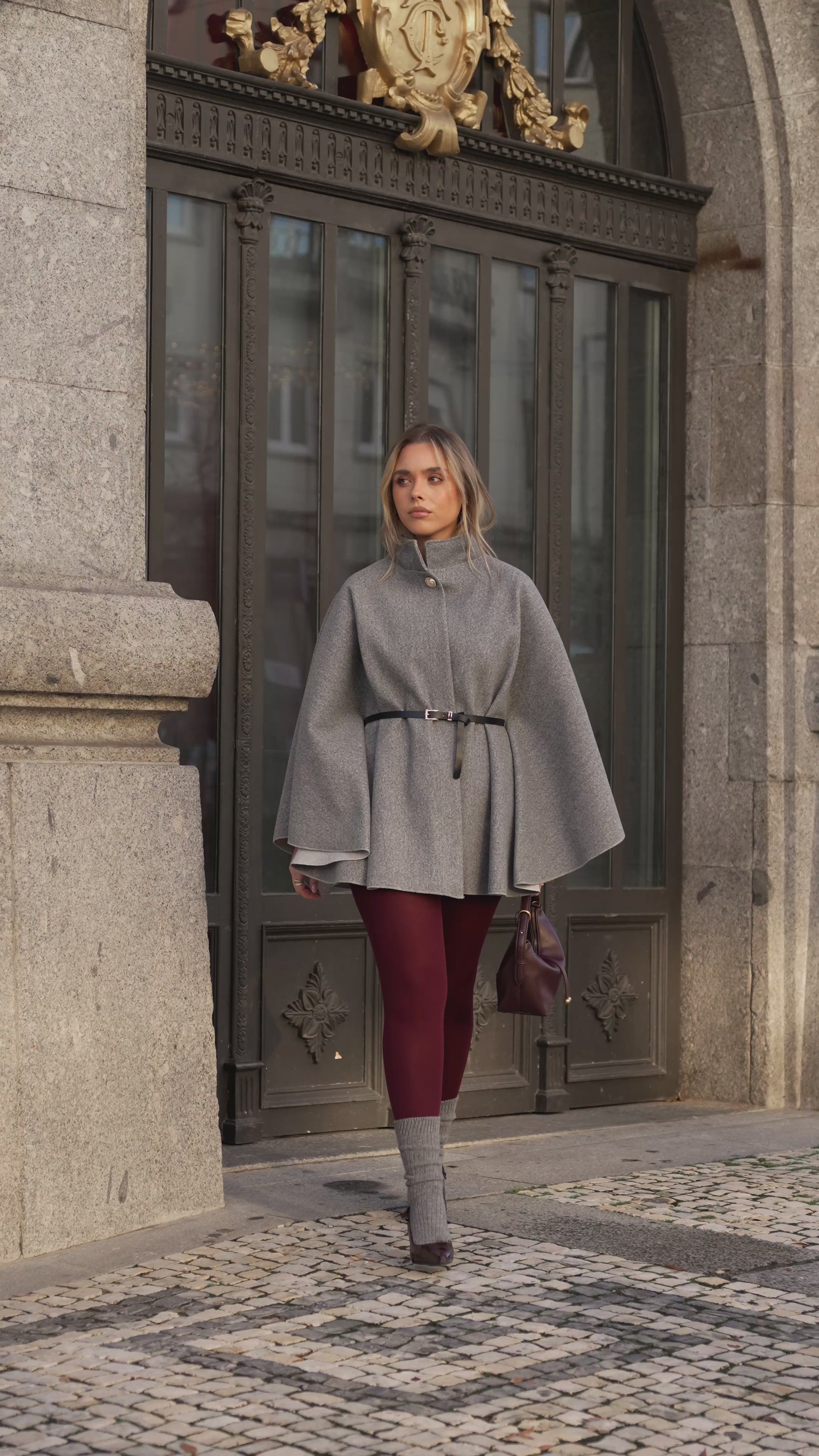 Cape with included belt, Gray