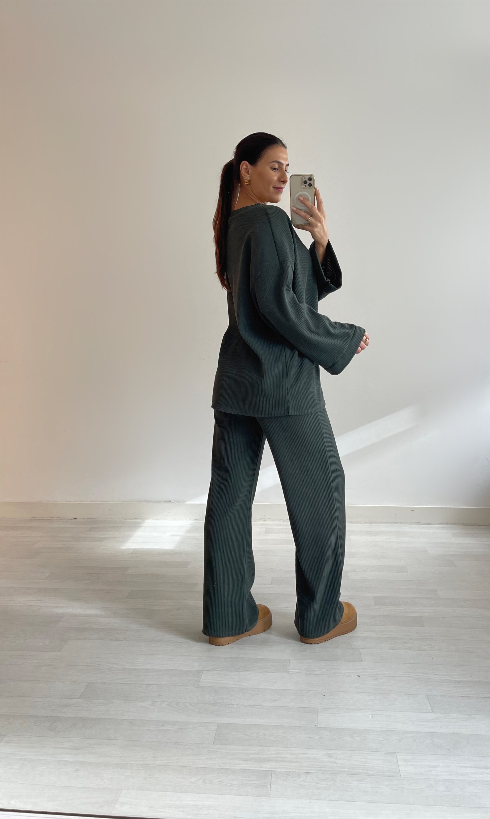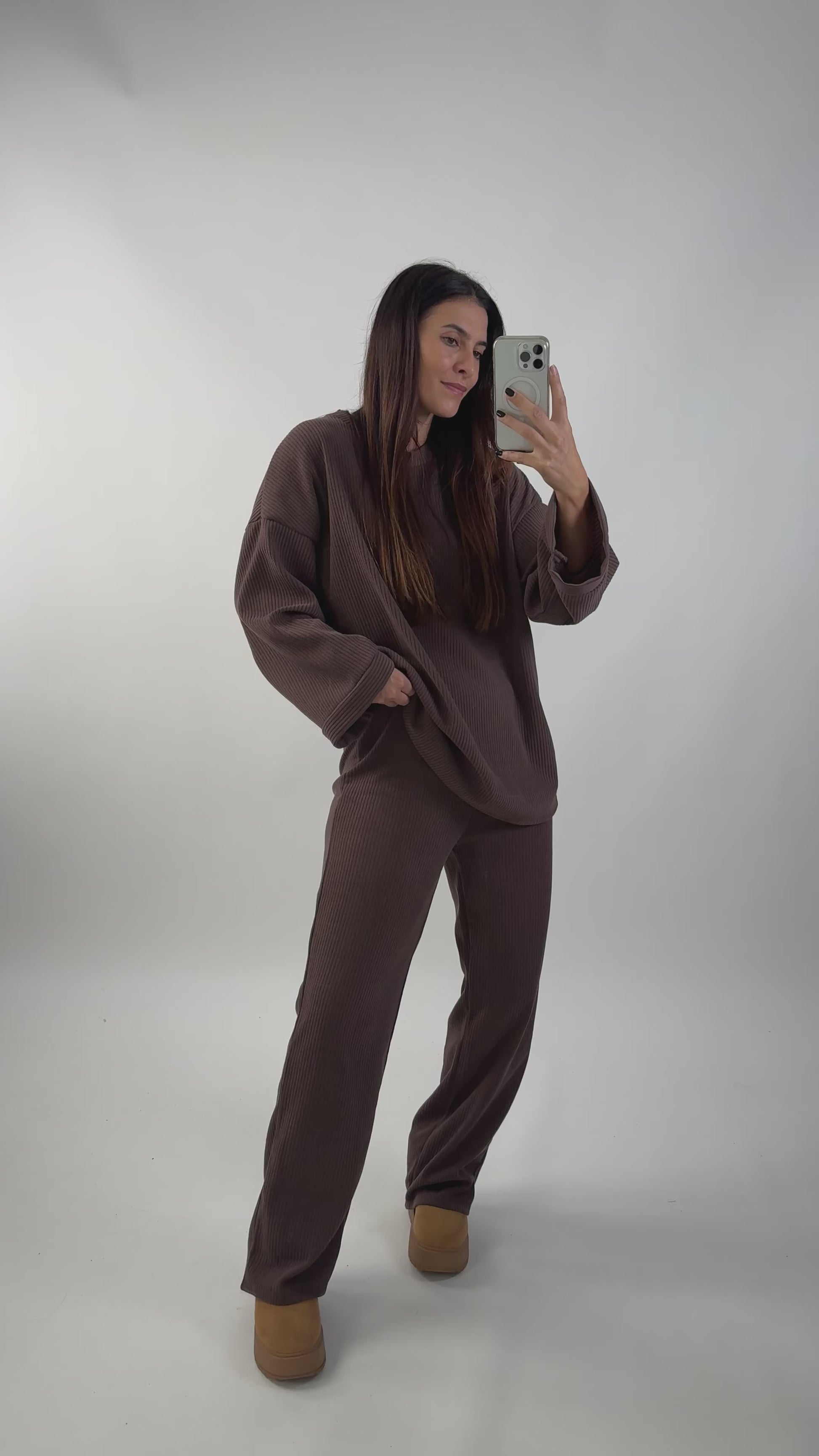 Oversized corduroy set, super comfortable and versatile. The pants have an elastic waistband for a perfect fit. One size fits all – fits well. XS to the XL and is ideal for pregnant women. Perfect for relaxed days, travel, or relaxing in style.