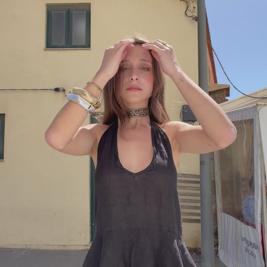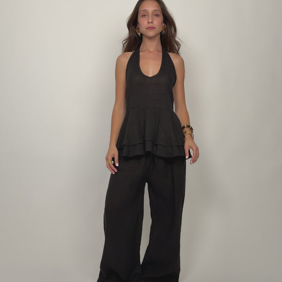 Black Linen Open Back Top Set
