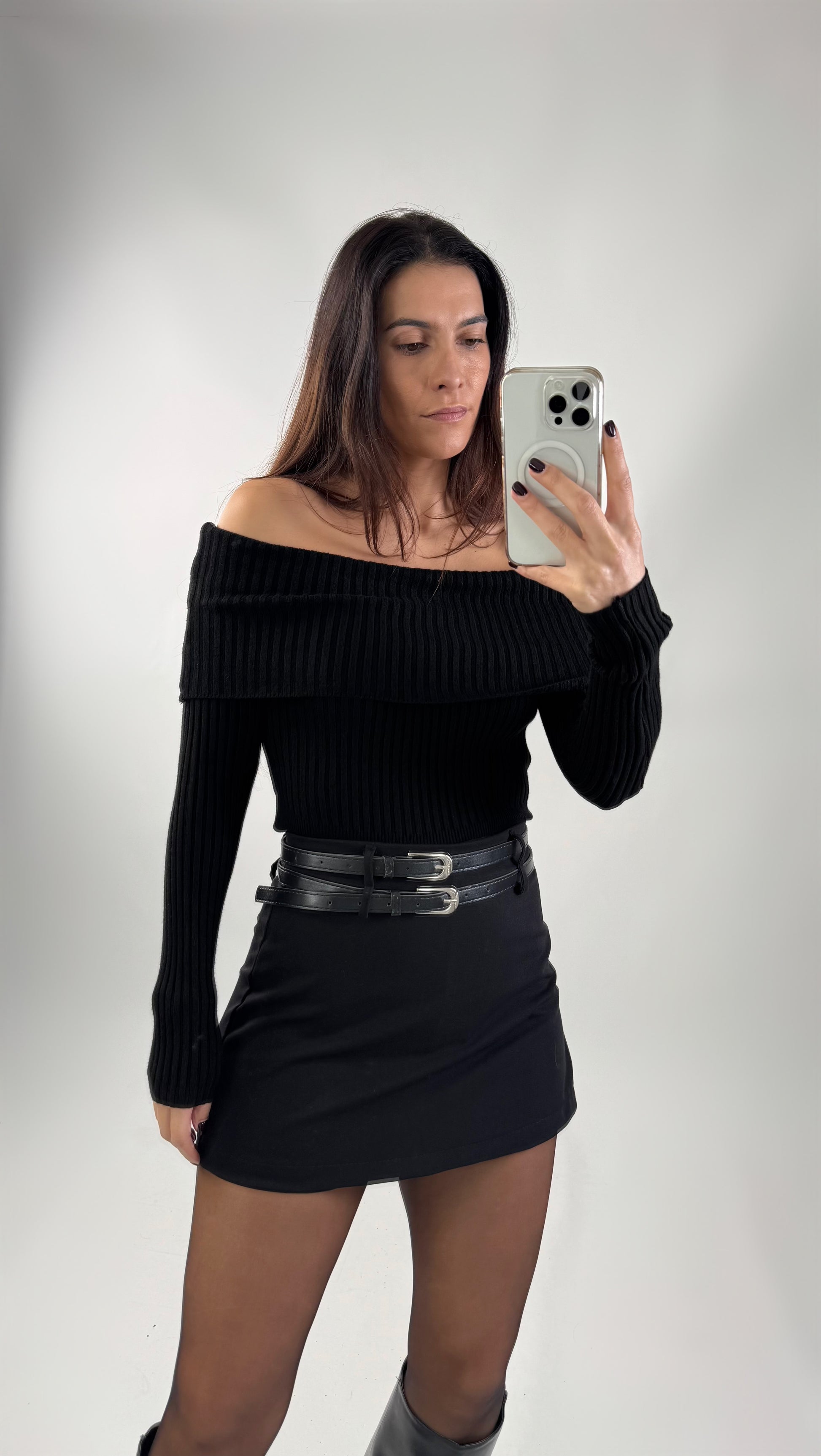 Short efecto falda en tejido tipo algodón con elasticidad. Tiene clips y cinturones incluidos. Se cierra con cierre oculto.