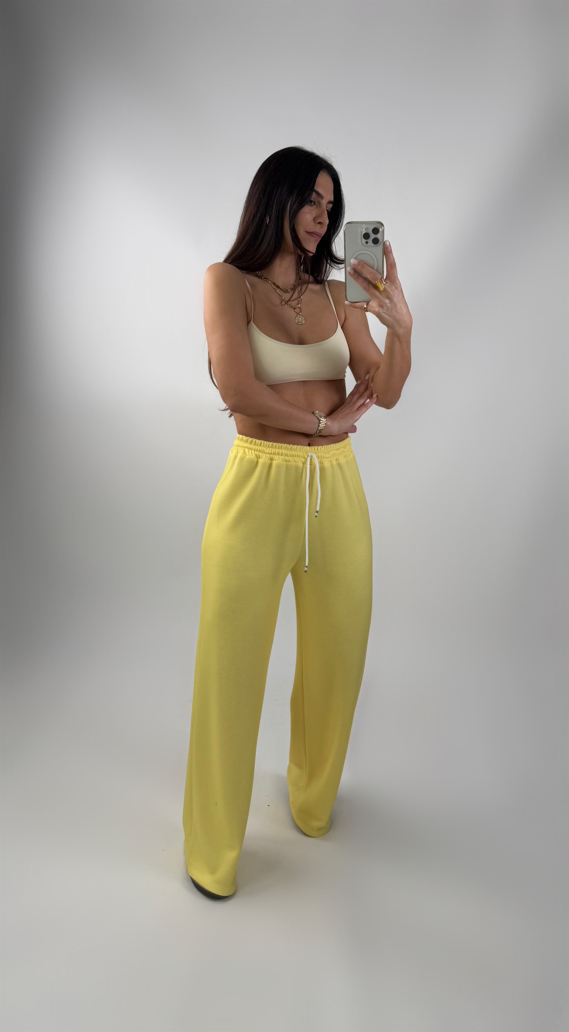 Joggingbroek van zacht pluche. Recht model, elastische tailleband en trekkoord. One size fits all. S naar de L.