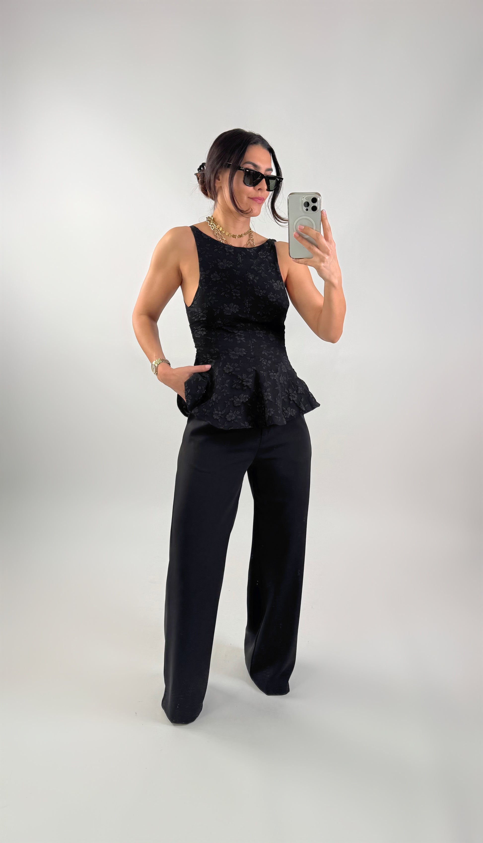Getailleerde, rechte broek. De stof is licht en soepel. Sluit met een rits en haakjes en heeft zakken, riemlussen en achterflappen met een nepzakeffect.