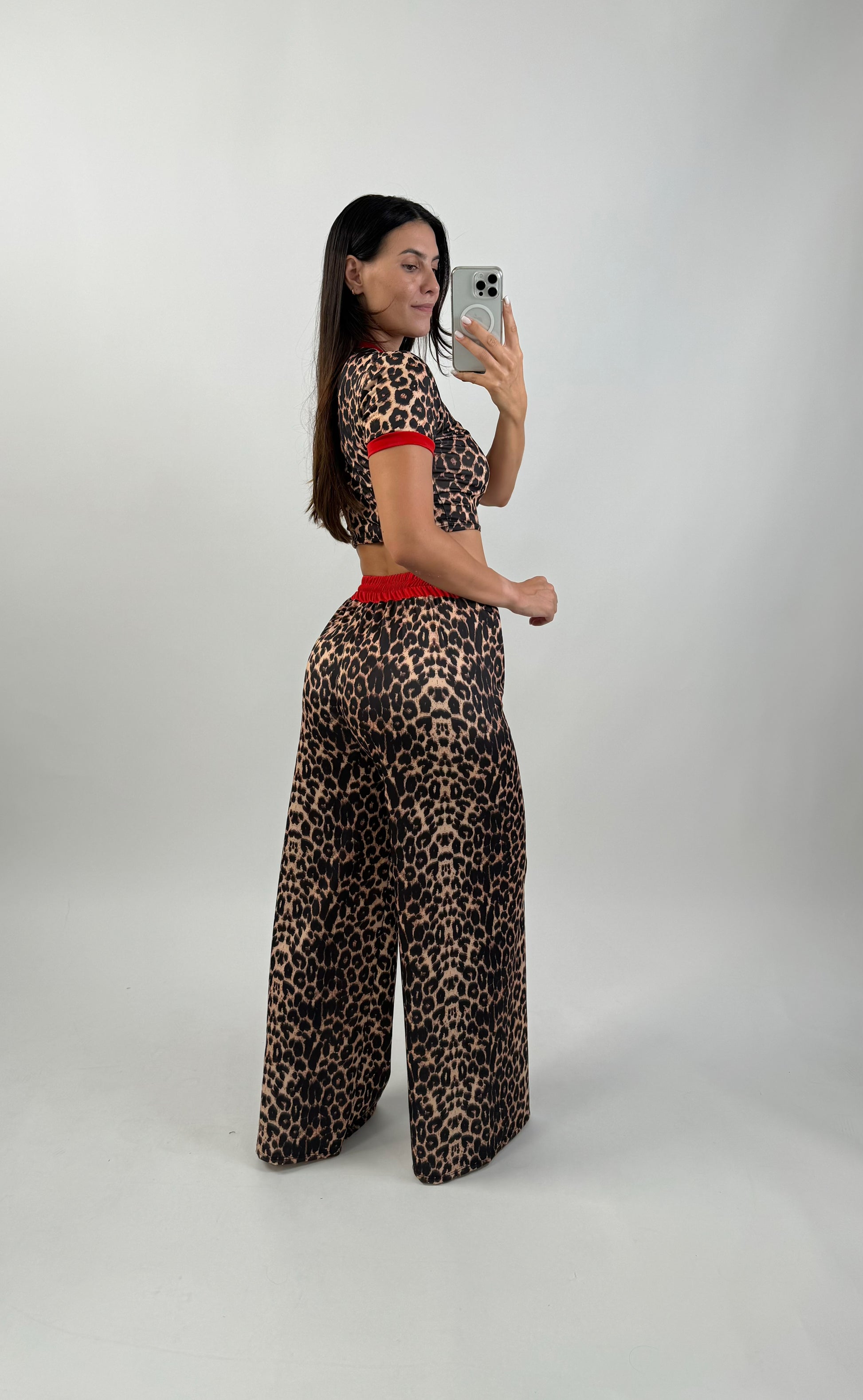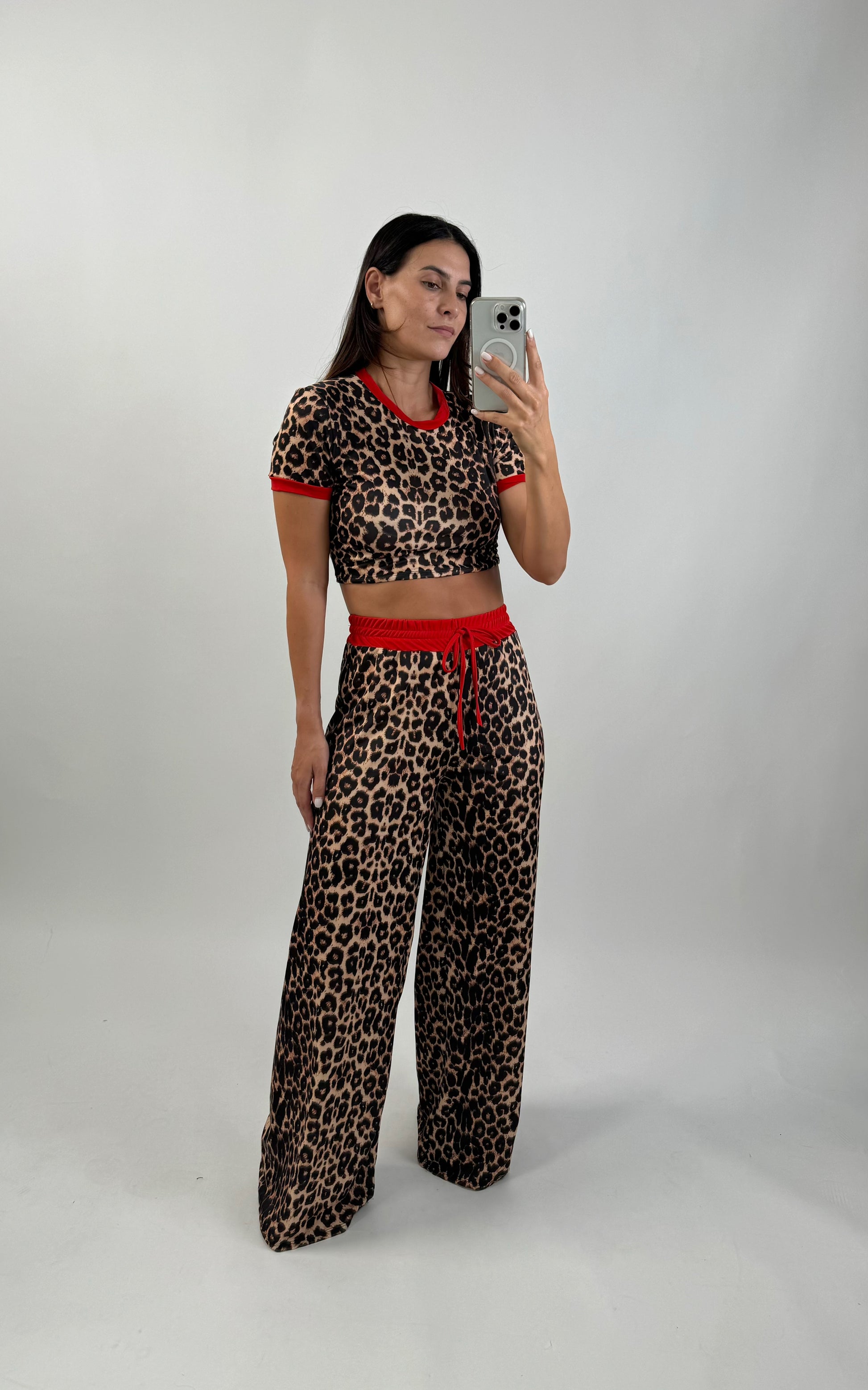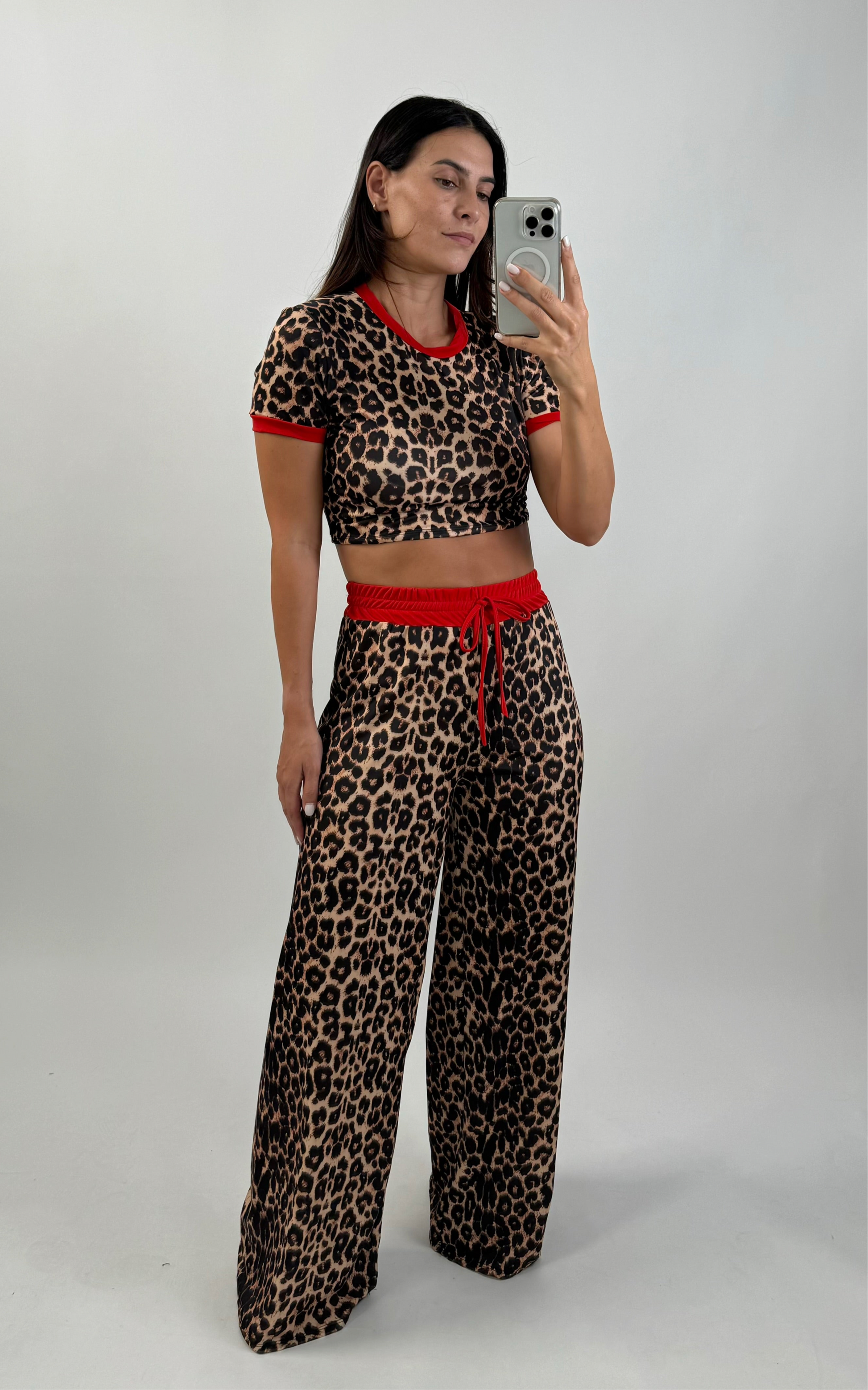 Ontdek de Alli ingesteld, een exemplaar dat een rechte broek combineert met een verfijnde top met tijgerinpatroon en rode details. Deze set is ideaal voor wie op zoek is naar een opvallende en elegante look. De rechte broek heeft een vloeiende, moderne pasvorm, terwijl de top opvalt door zijn opvallende patroon en levendige rode details, die een vleugje kleur en originaliteit toevoegen. Perfect voor diverse gelegenheden, de Alli Set is de ideale keuze om een impactvolle en stijlvolle look te creëren.