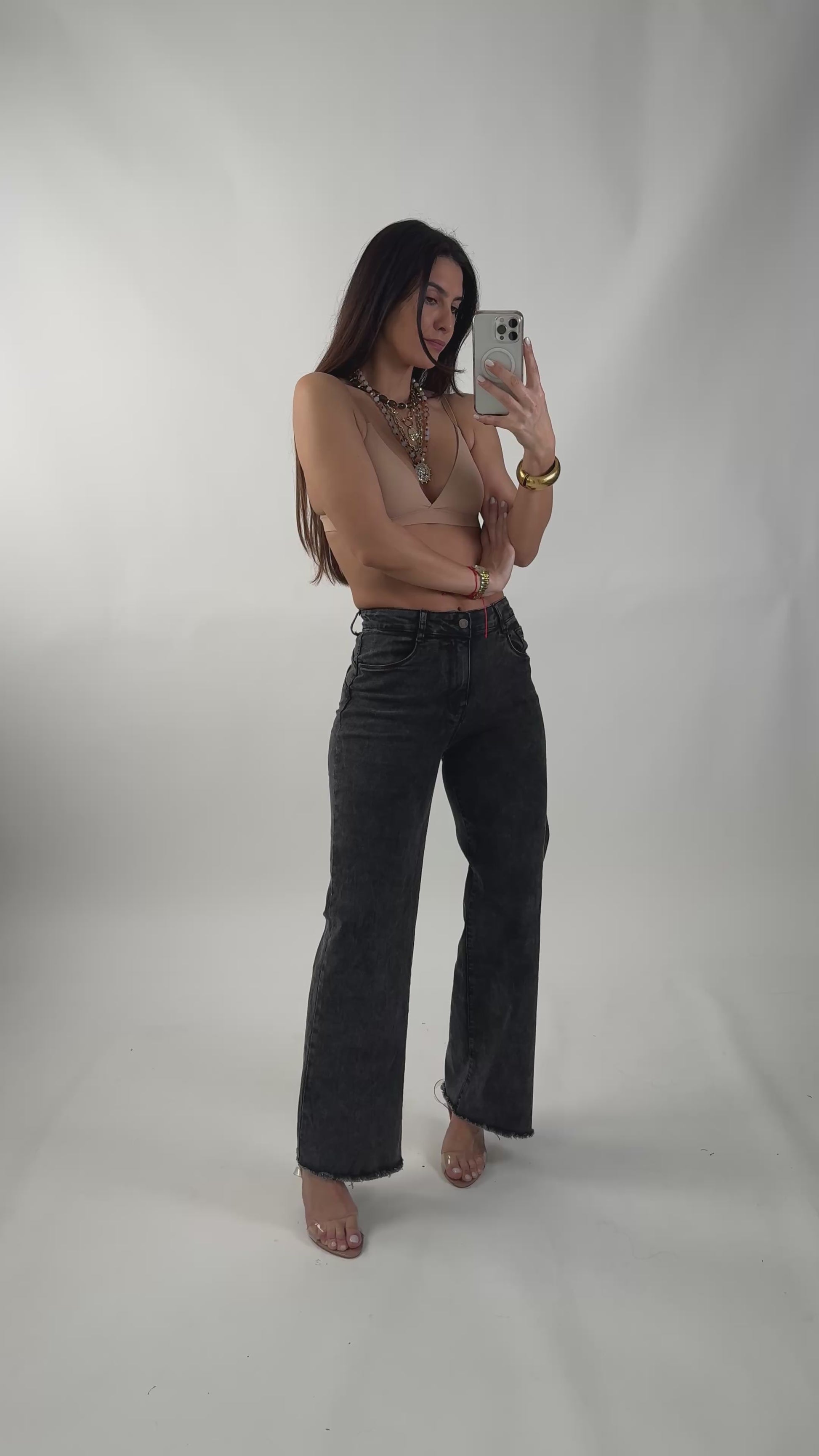 Wijde jeans. Met stretch, een gerafelde zoom, een push-up effect, zakken, riemlussen en een rits- en knoopsluiting.