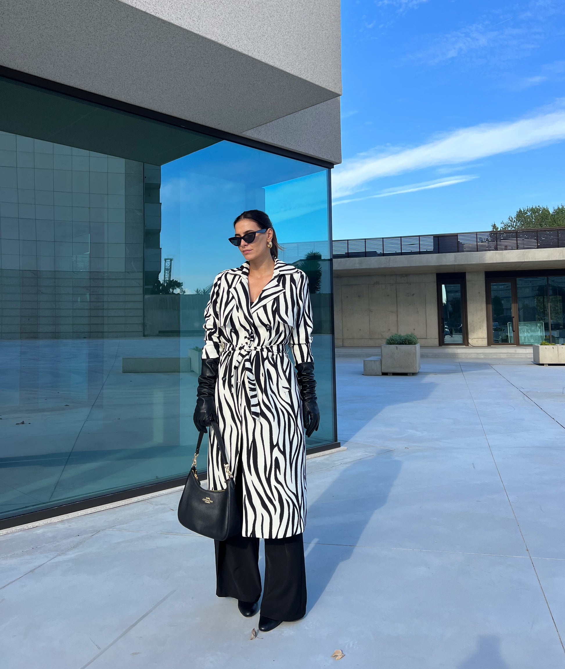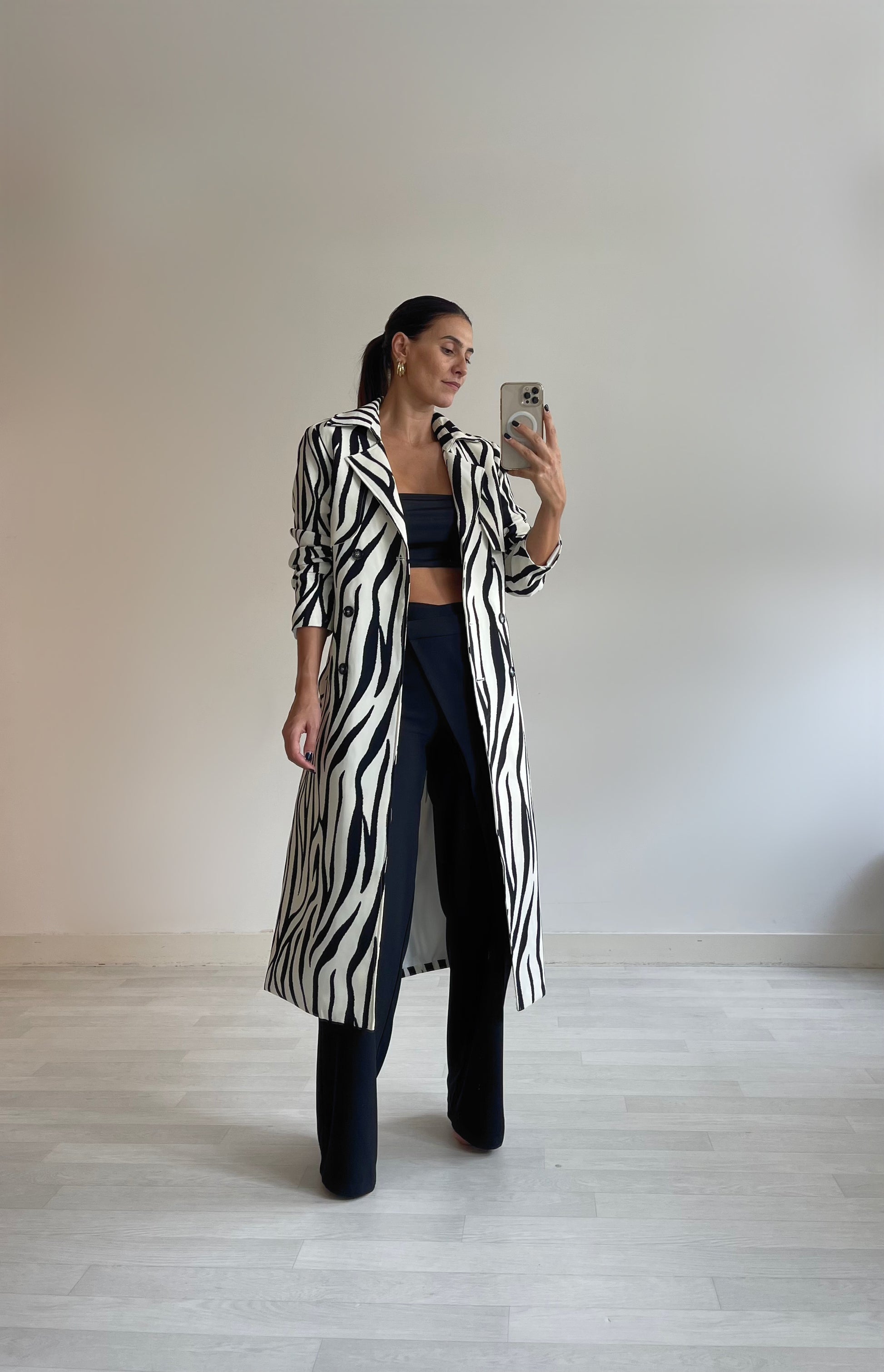 Trenchcoat met zebramotief, 100% gevoerd. Riem met kleurcoating.