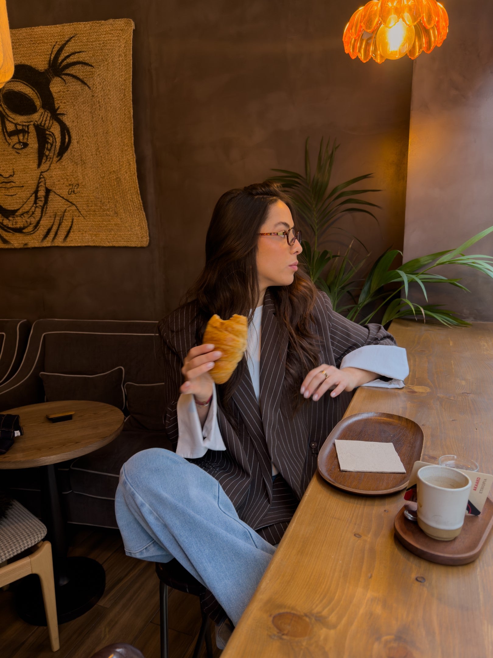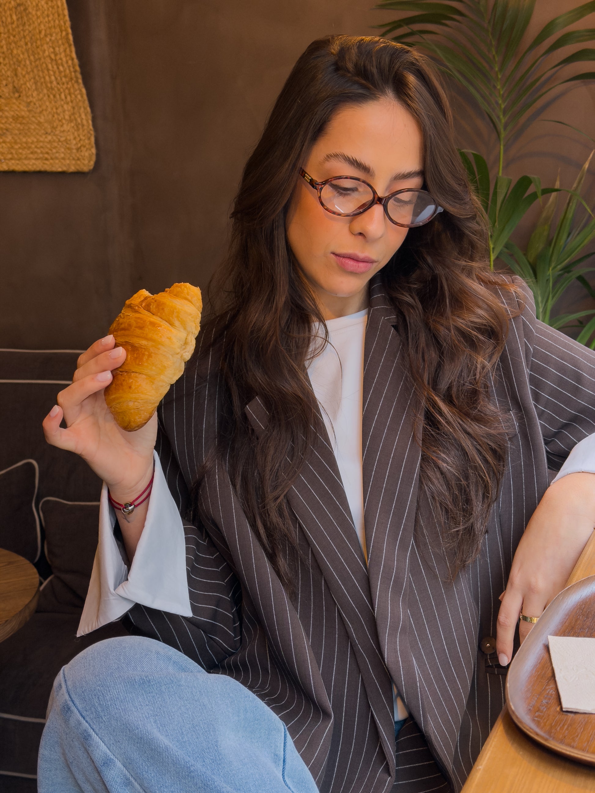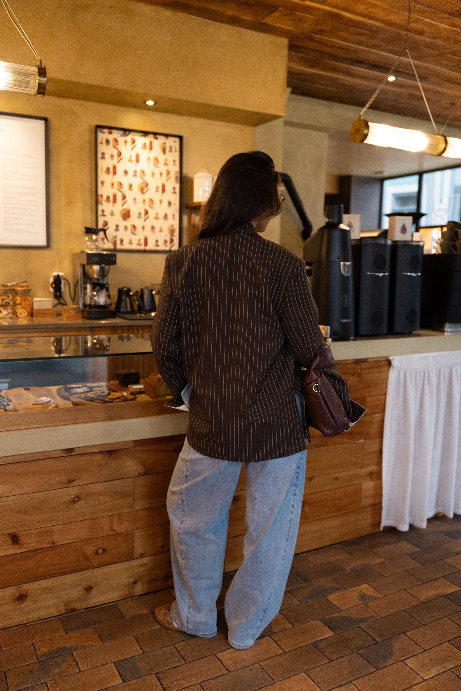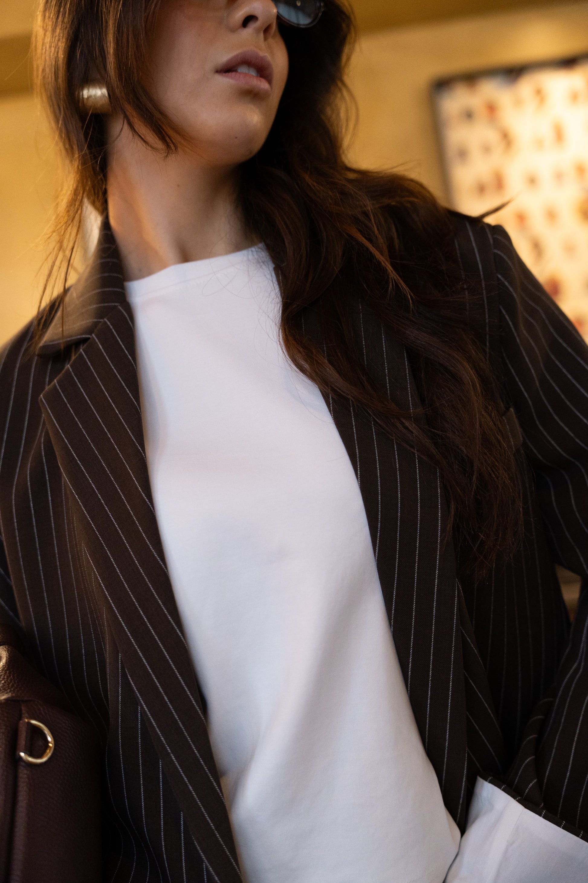 Czekoladowa, oversize'owa marynarka z paskiem dyplomatycznym