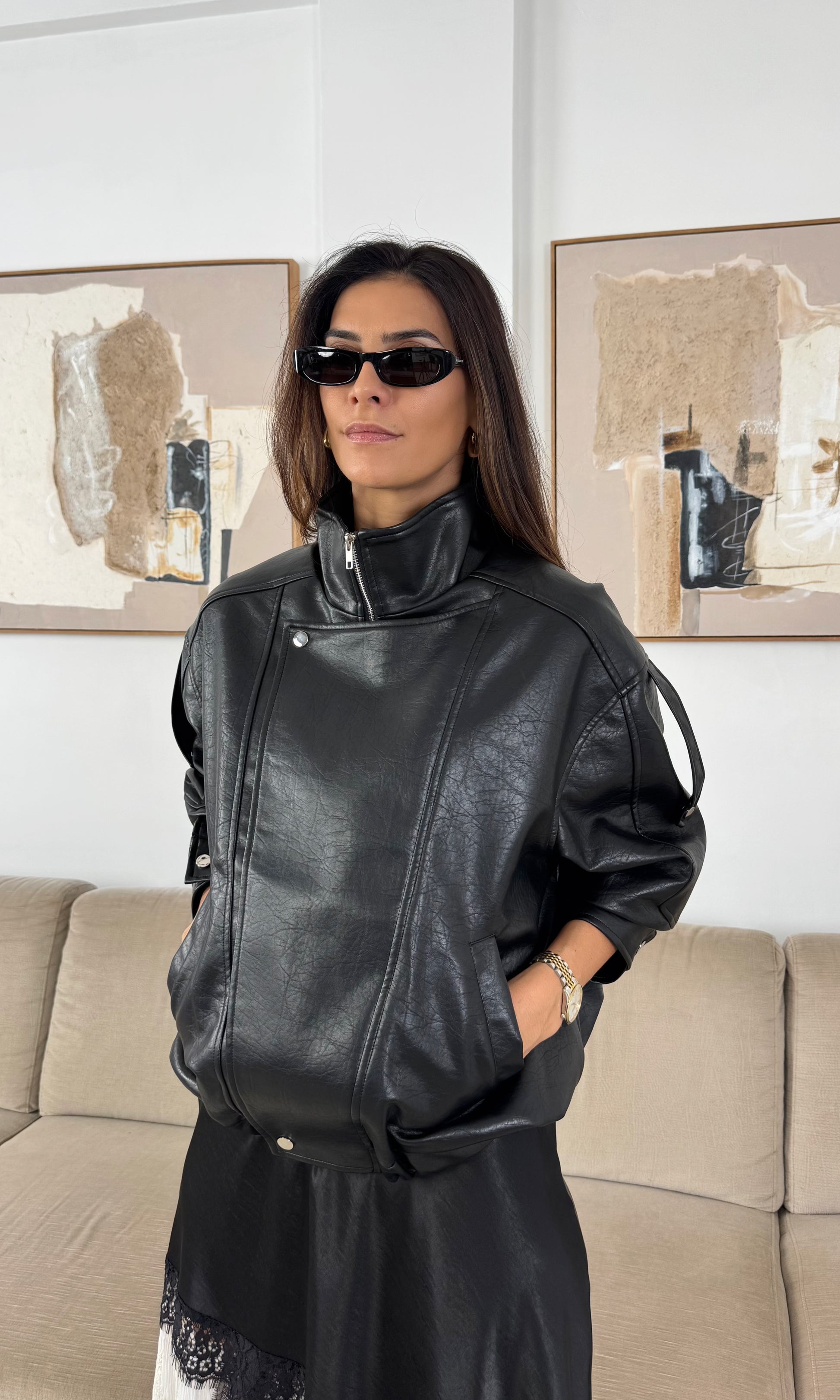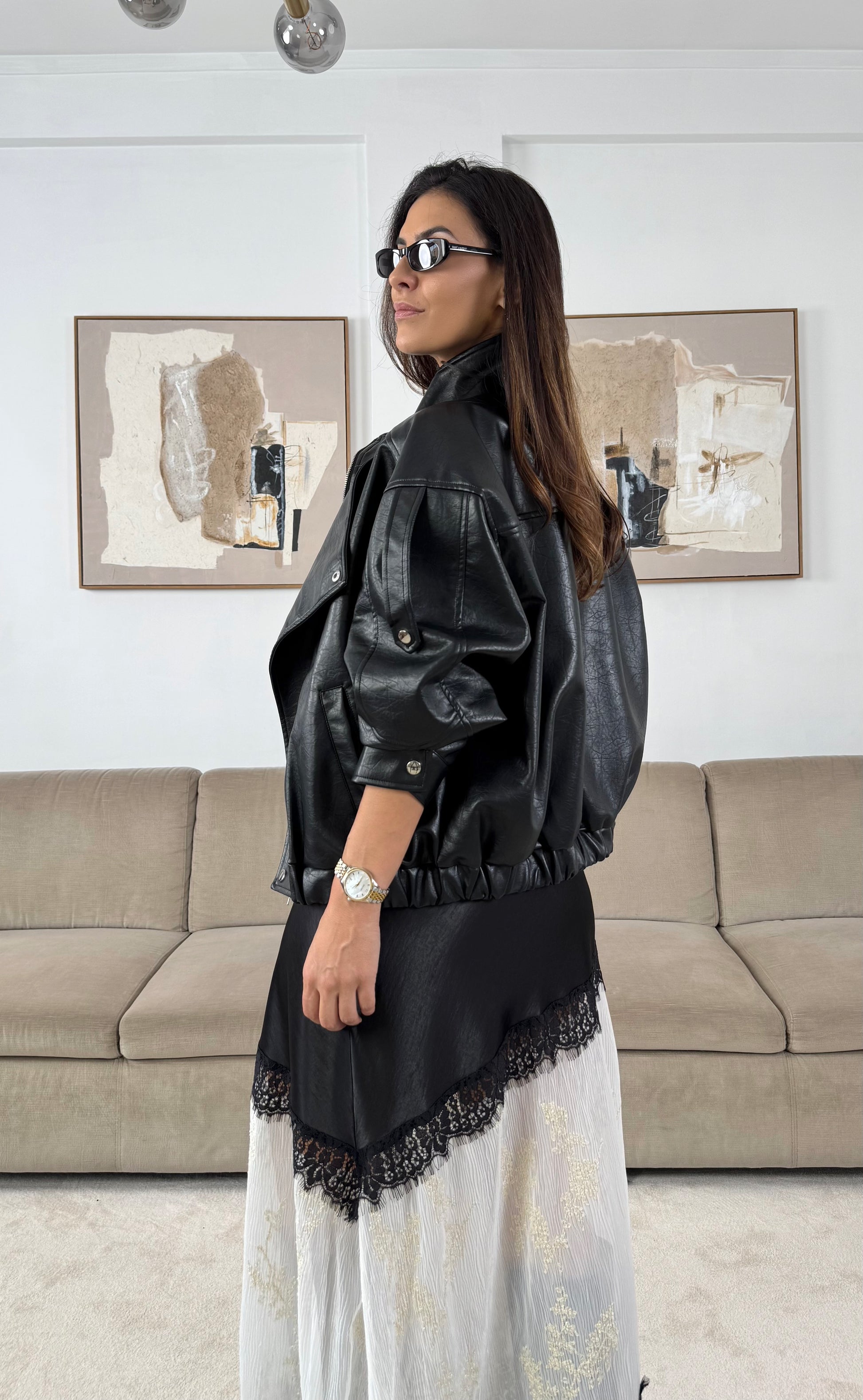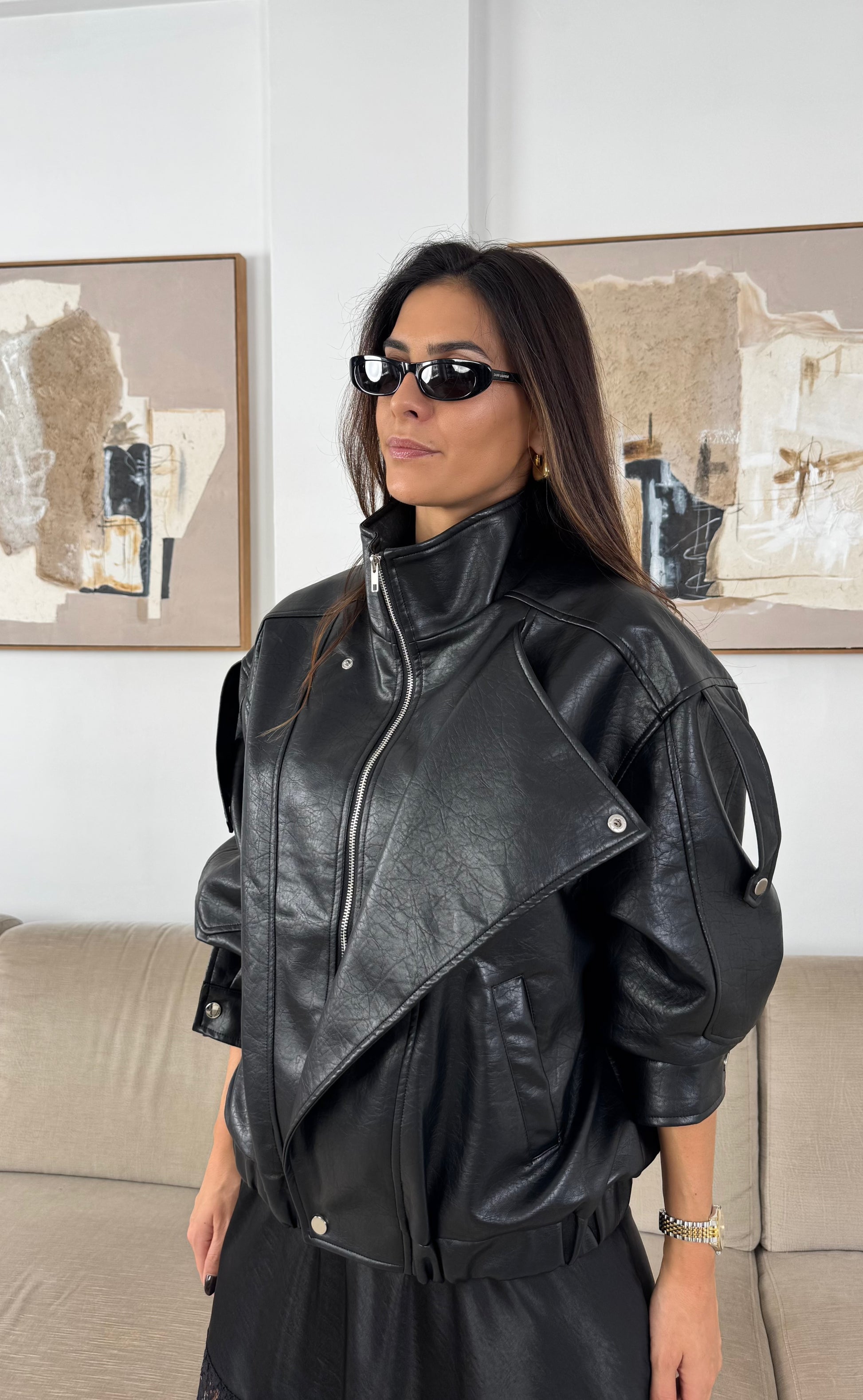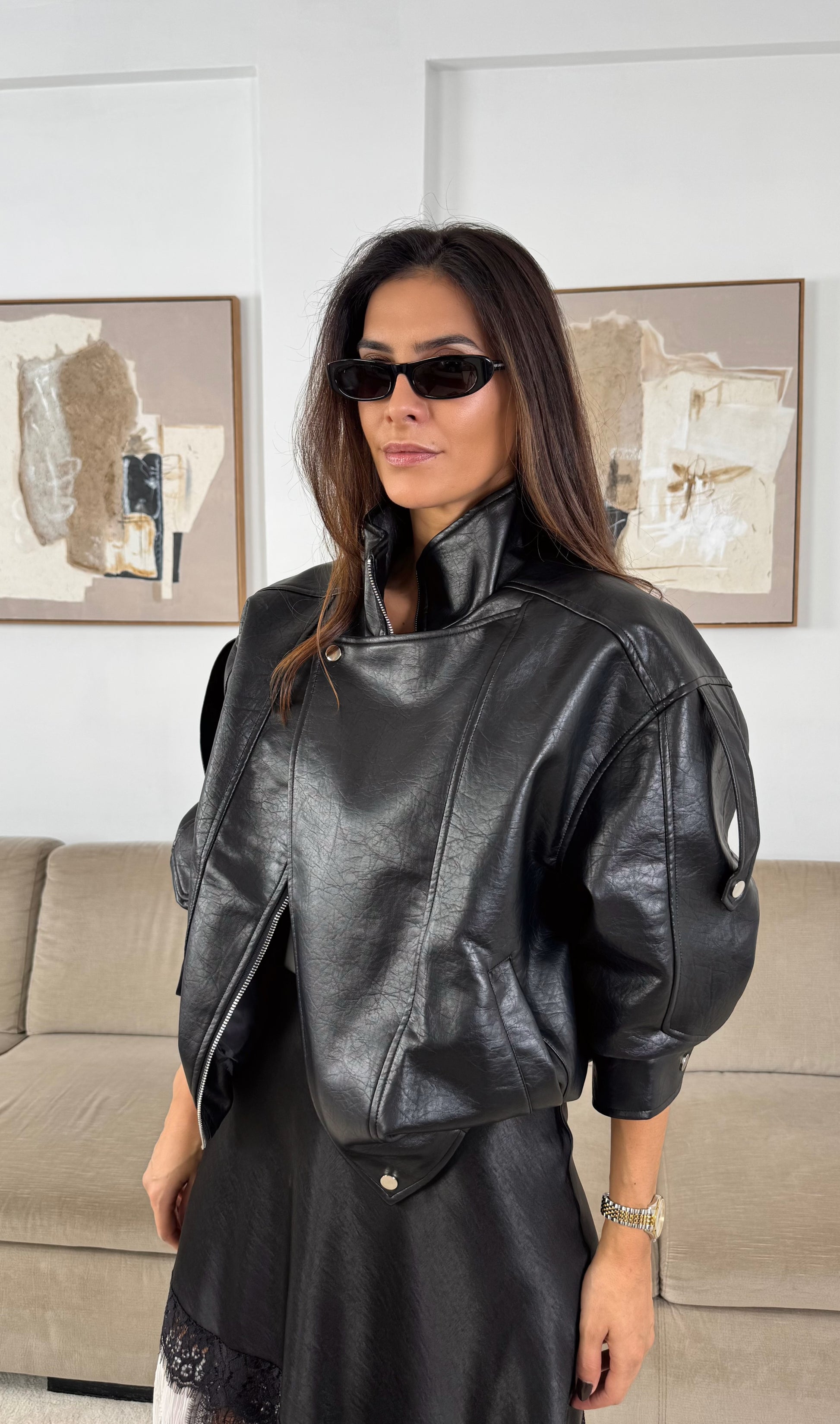 Kurtka z kołnierzem. Długie rękawy z mankietami zapinanymi na zatrzaski i patkami na ramionach. Kieszenie boczne. Podszewka łączona. Zapięcie z przodu na zamek błyskawiczny z zatrzaskami.
