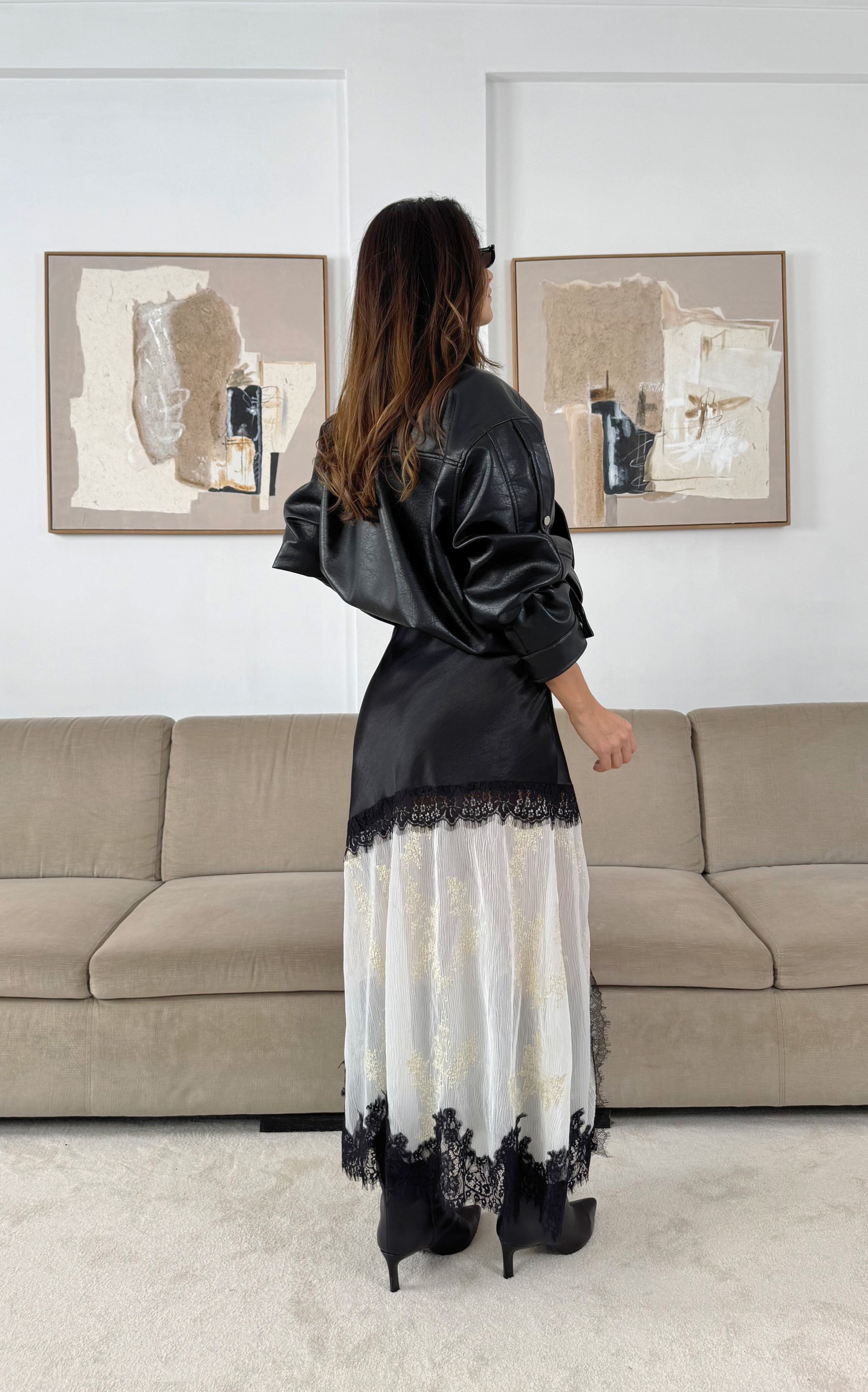 Modelka ma 1,75 m wzrostu i zazwyczaj nosi M i jest z L dla uzyskania efektu przesady.