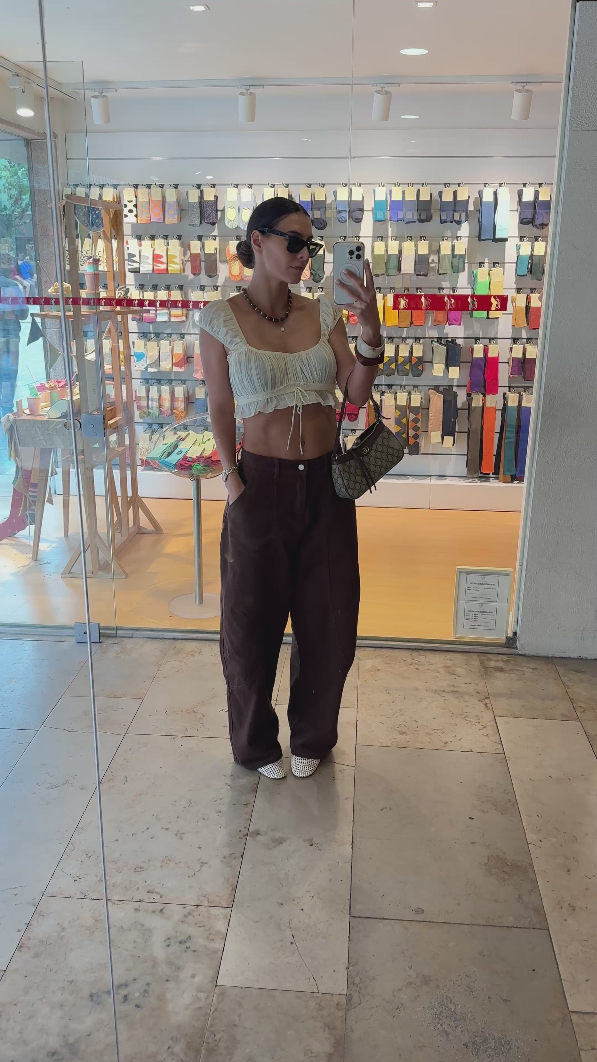 Spodnie z efektem balonowym. Wysoki stan, zapinane na suwak i guzik, z kieszeniami.