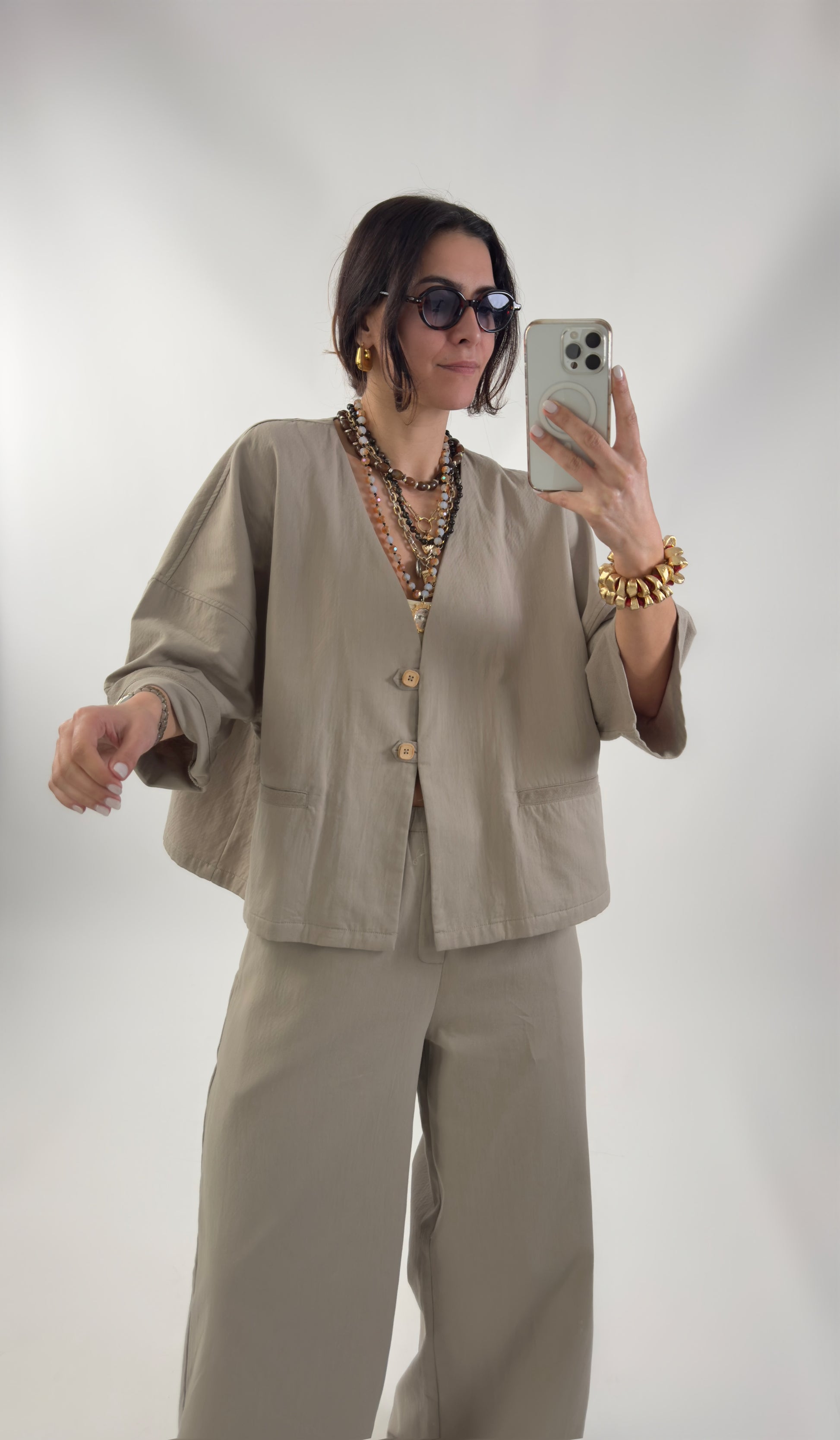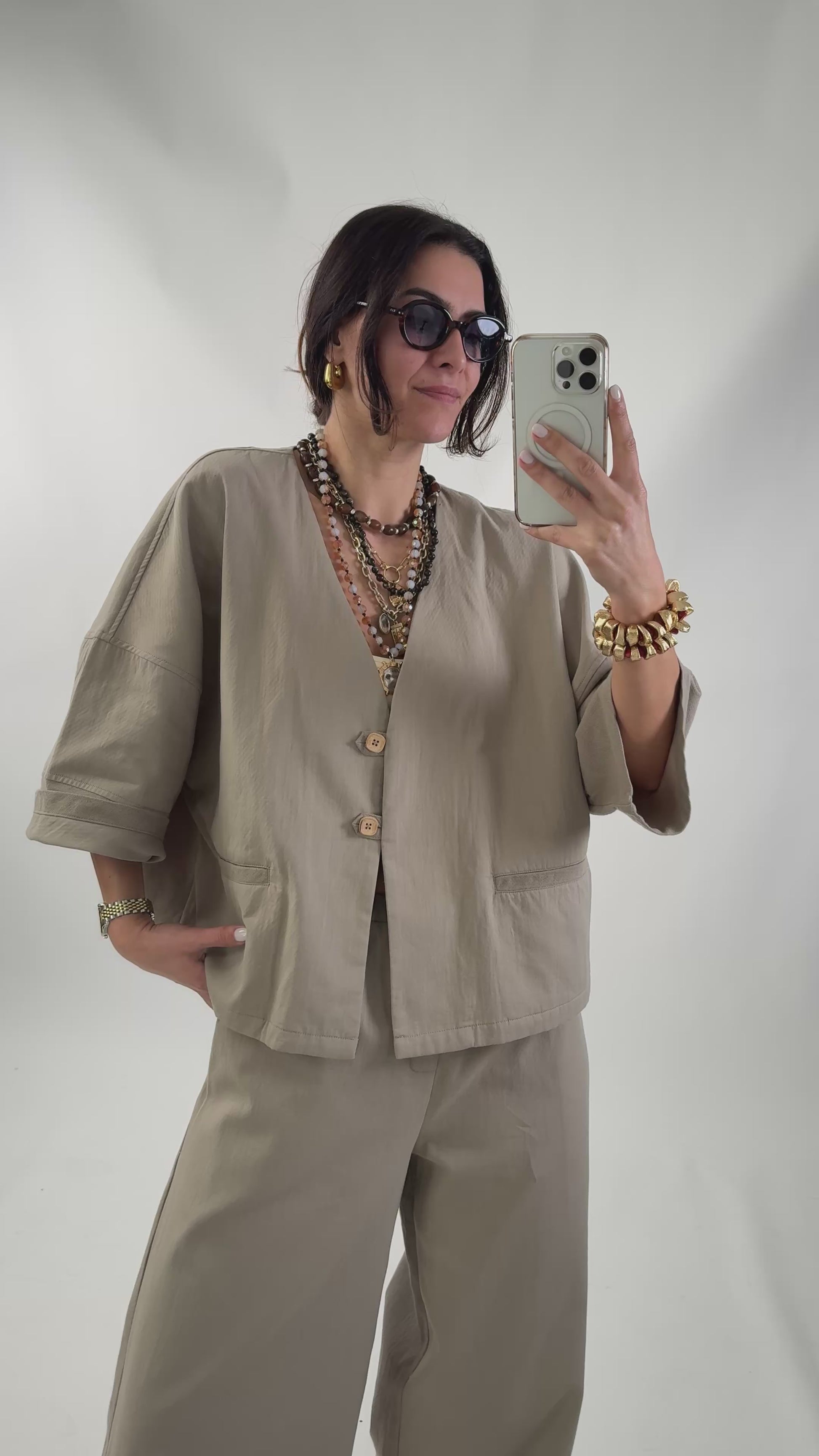 Koszula oversize, 100% bawełny. Posiada kieszenie, rękawy 3/4 i zapinana jest na guziki. Jest to rozmiar uniwersalny S do L.