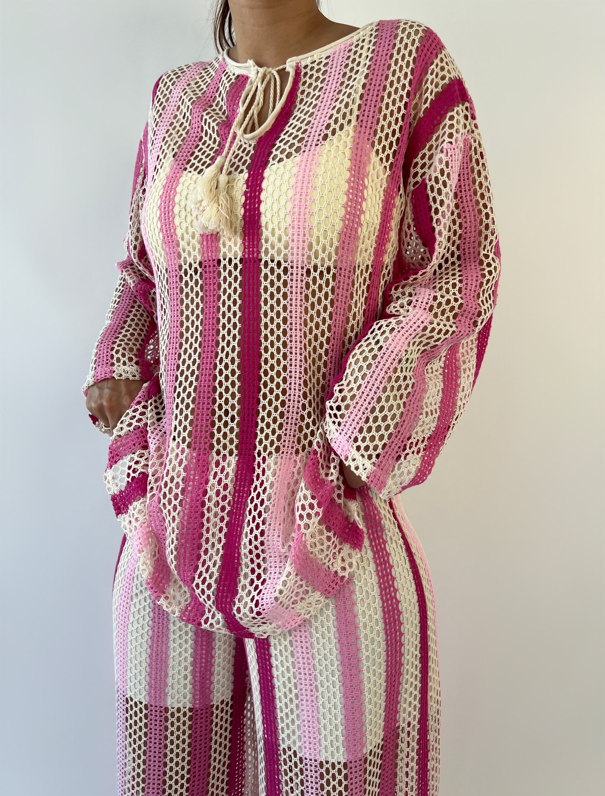 Sweter z siateczki, fason oversize. Ubierz się dobrze XS the L. Spodnie na podszewce, w pasie gumka