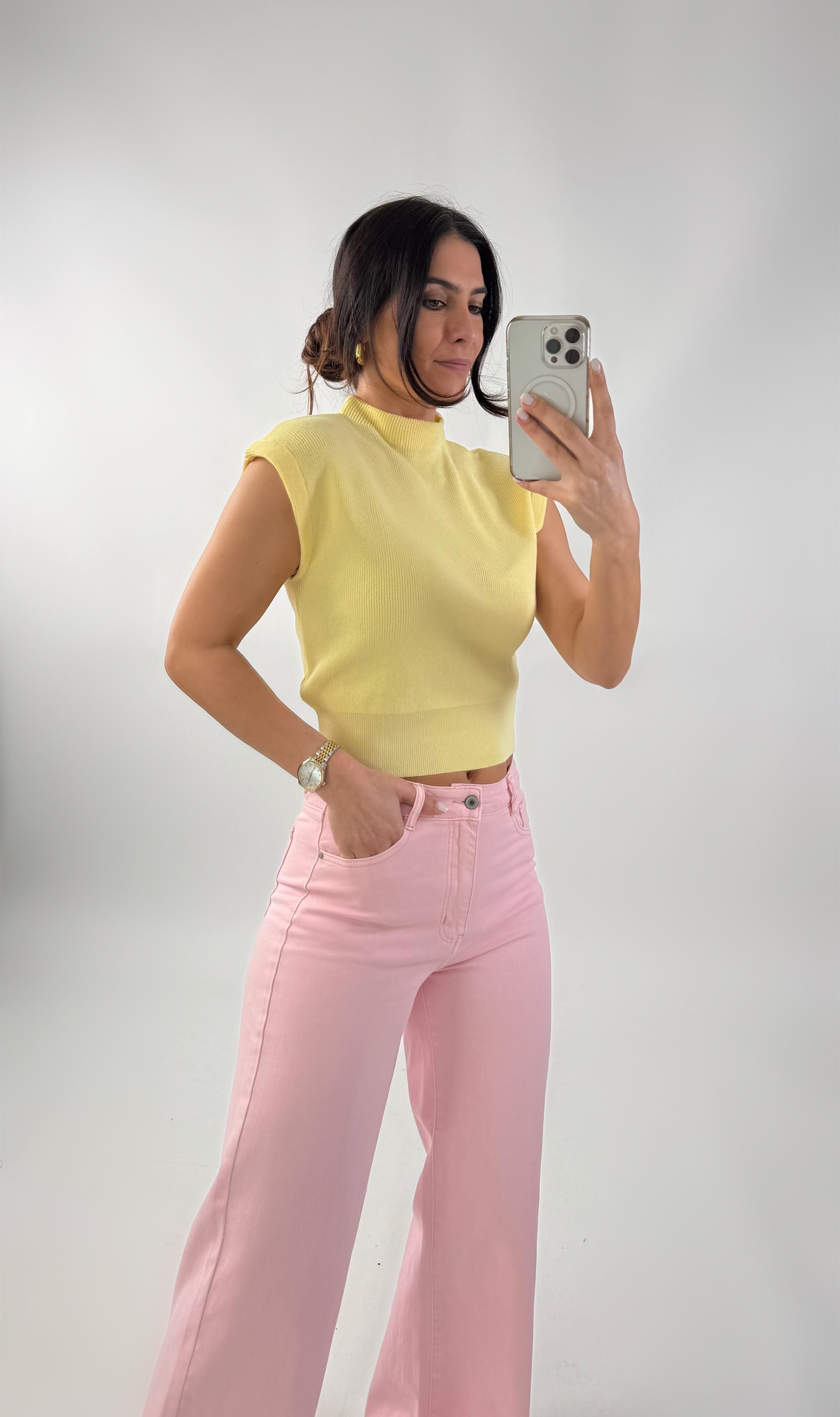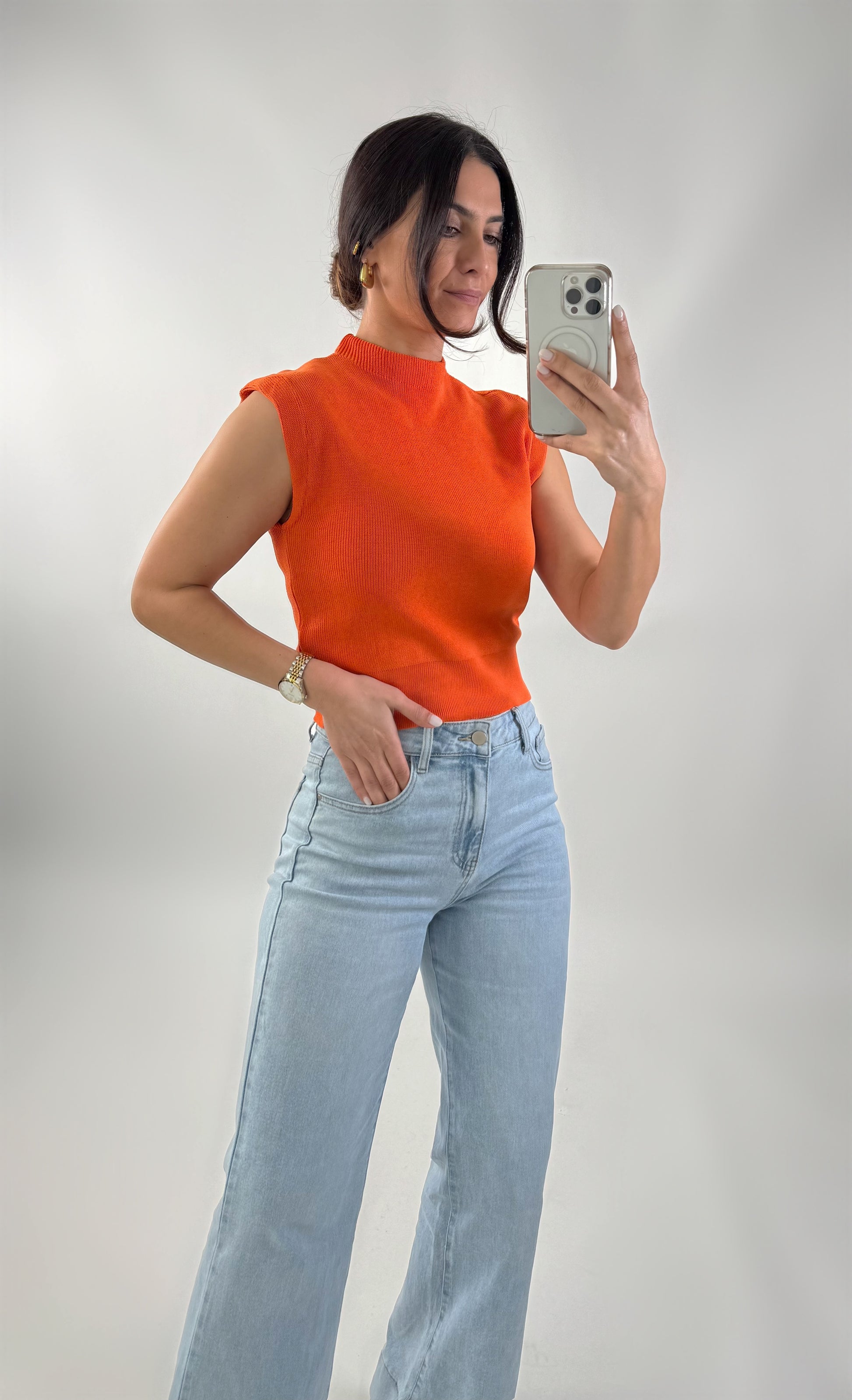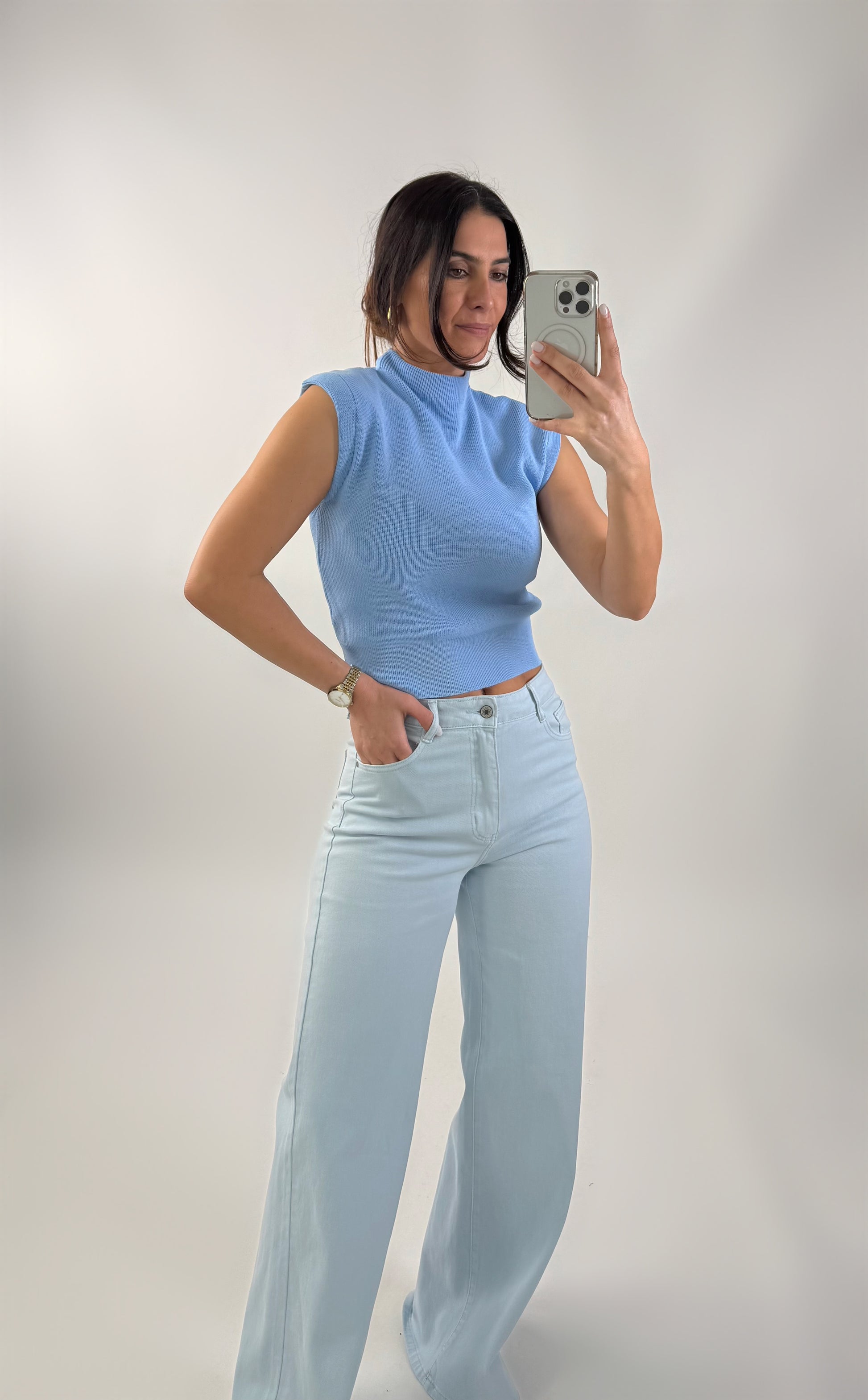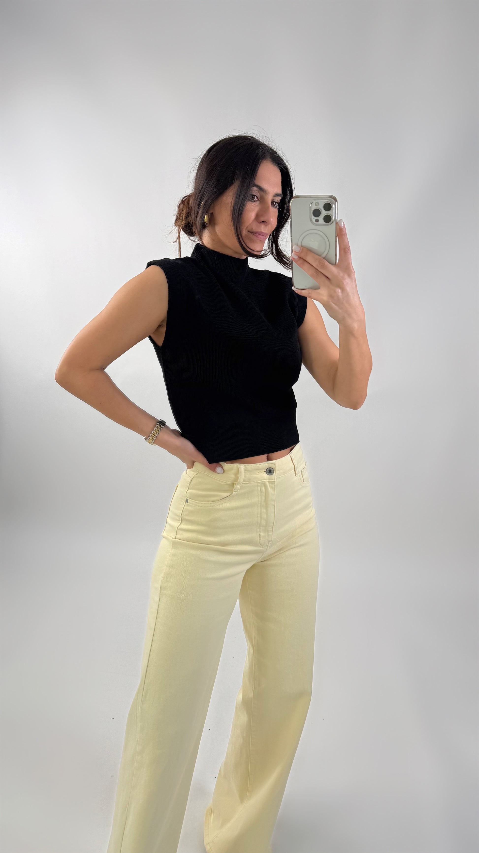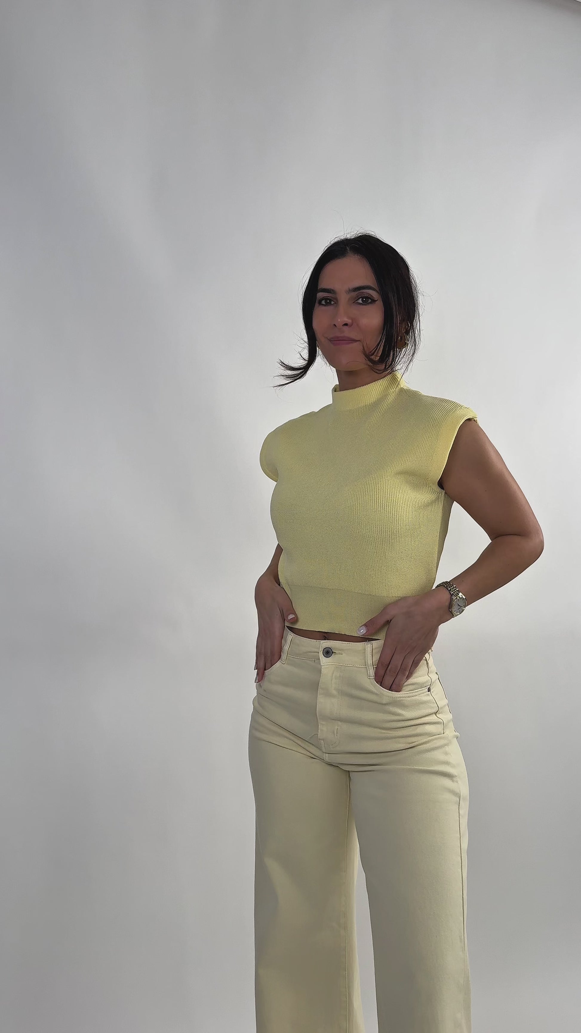 Sweter wykonany z cienkiego ściągacza. Posiada elastyczność, półkołnierz, rękawy z otworami na ręce i ściągacze w pasie.