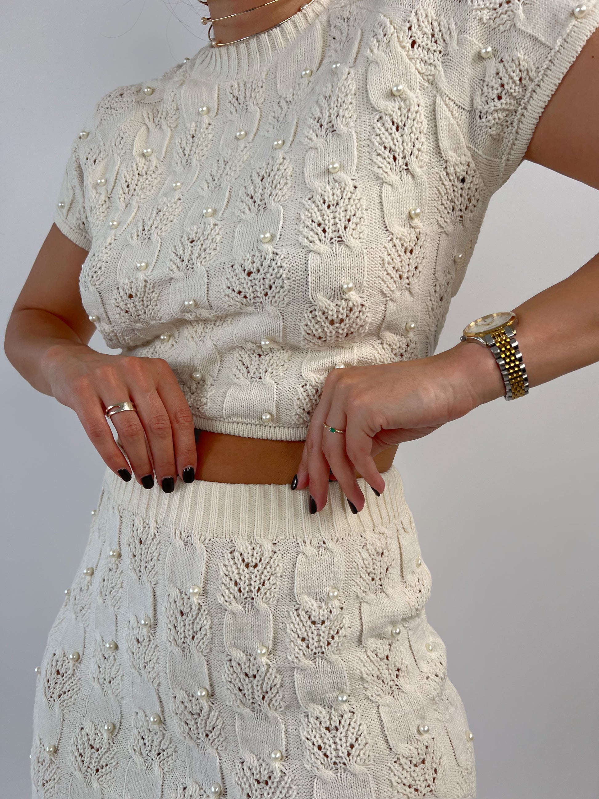 Komplet z ręcznie naszytymi perłami. Zestaw z elastycznością. Rozmiar uniwersalny XS S M L doskonale.