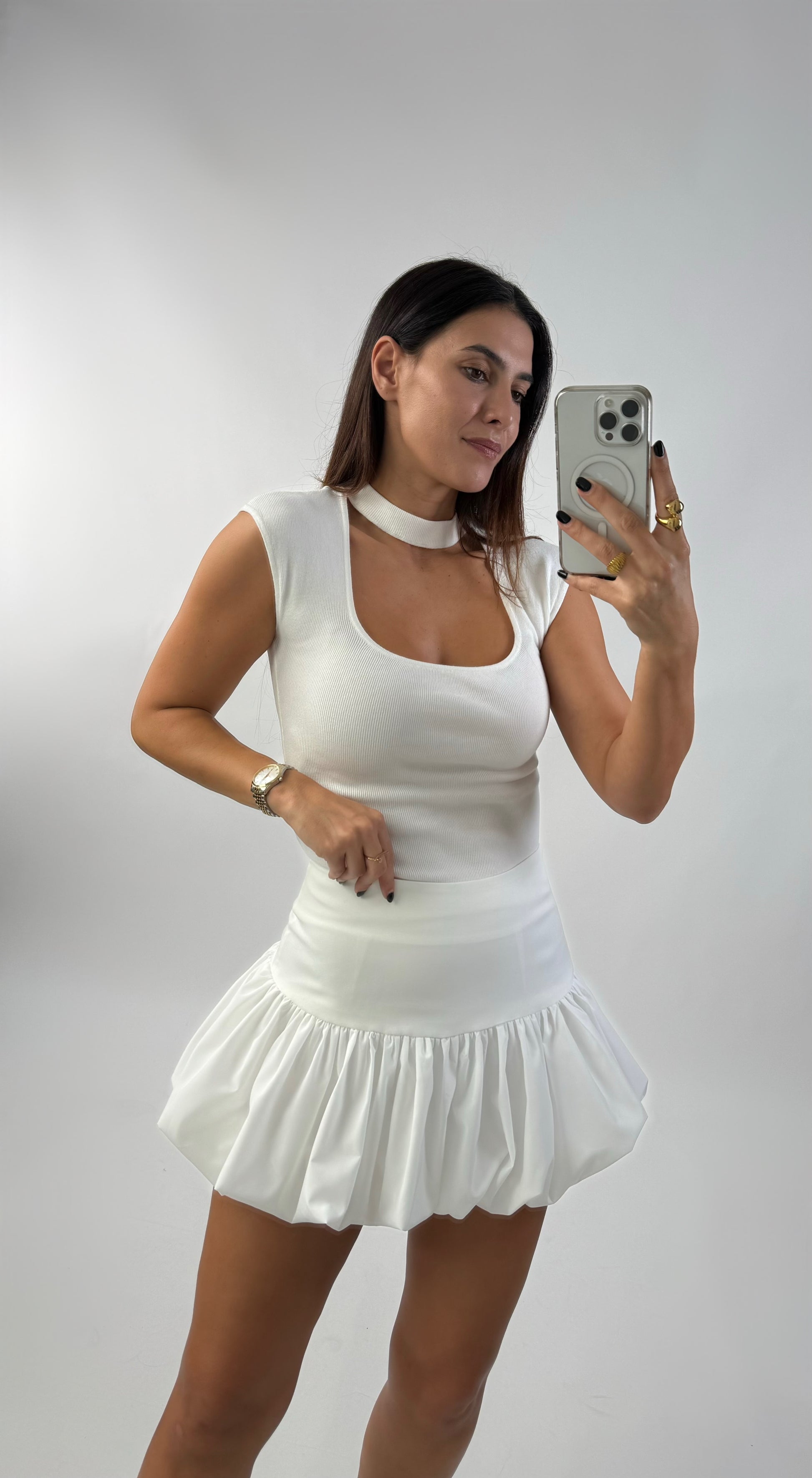 TO Lniana spódnica typu balon łączy w sobie klasyczny urok balonów z wyrafinowaniem lnianej tkaniny, tworząc uniwersalny i stylowy egzemplarz. Obszerny i płynny kształt balonu zapewnia mu czarujący ruch, a tkanina typu lniana zapewnia lekką i przewiewną fakturę, idealną na cieplejsze dni. Regulowana talia zapewnia idealne dopasowanie, a neutralny kolor i wyrafinowany krój sprawiają, że ta spódnica będzie łatwym wyborem na każdą okazję, od codziennych wydarzeń po bardziej wyrafinowane spotkania.