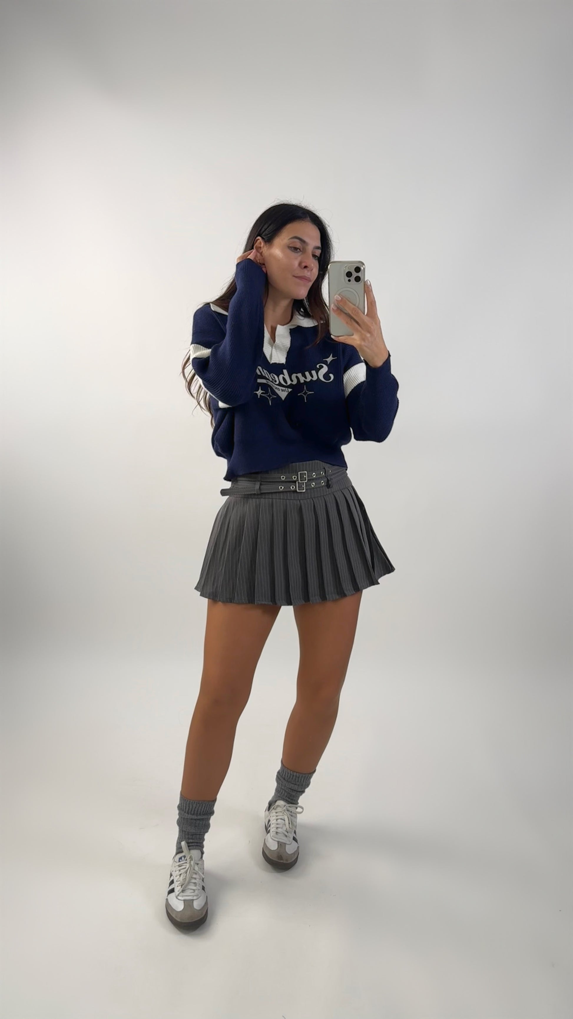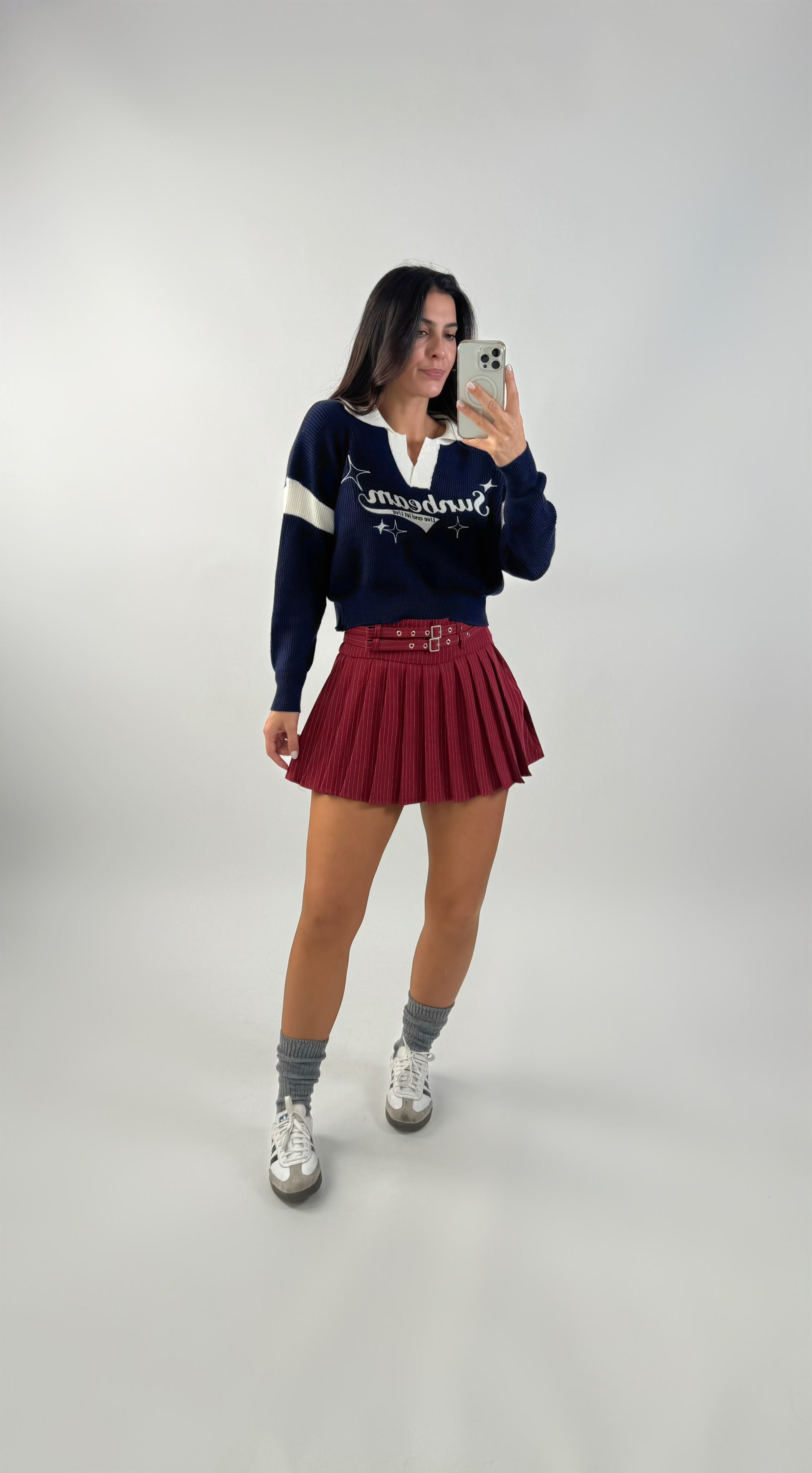 Spódnica Lilia, plisowana spódnica z paskiem dyplomatycznym i paski z tej samej tkaniny. Zapinana na niewidoczny zamek błyskawiczny z boku. Posiada podszewkę z efektem spodenek.
