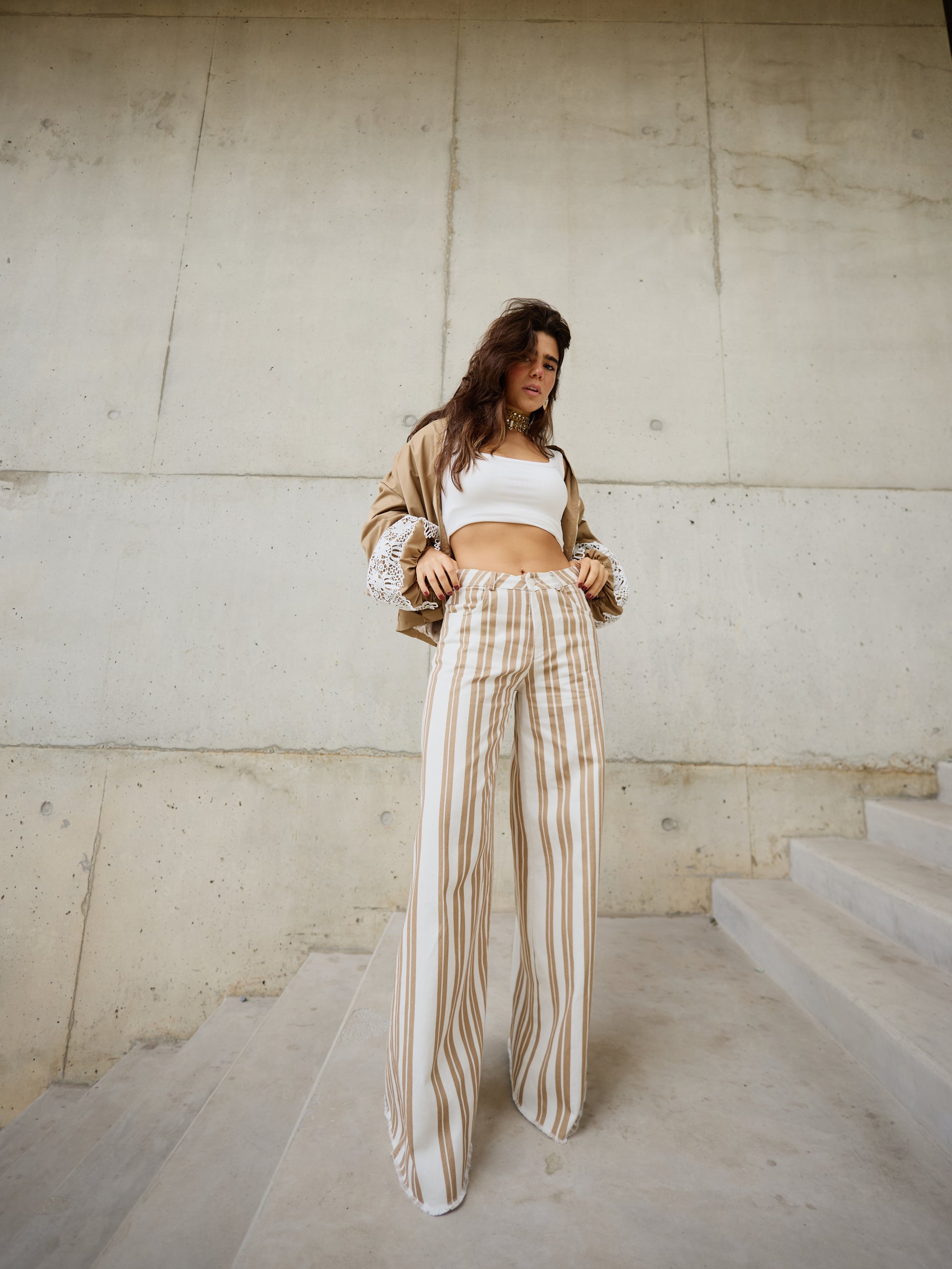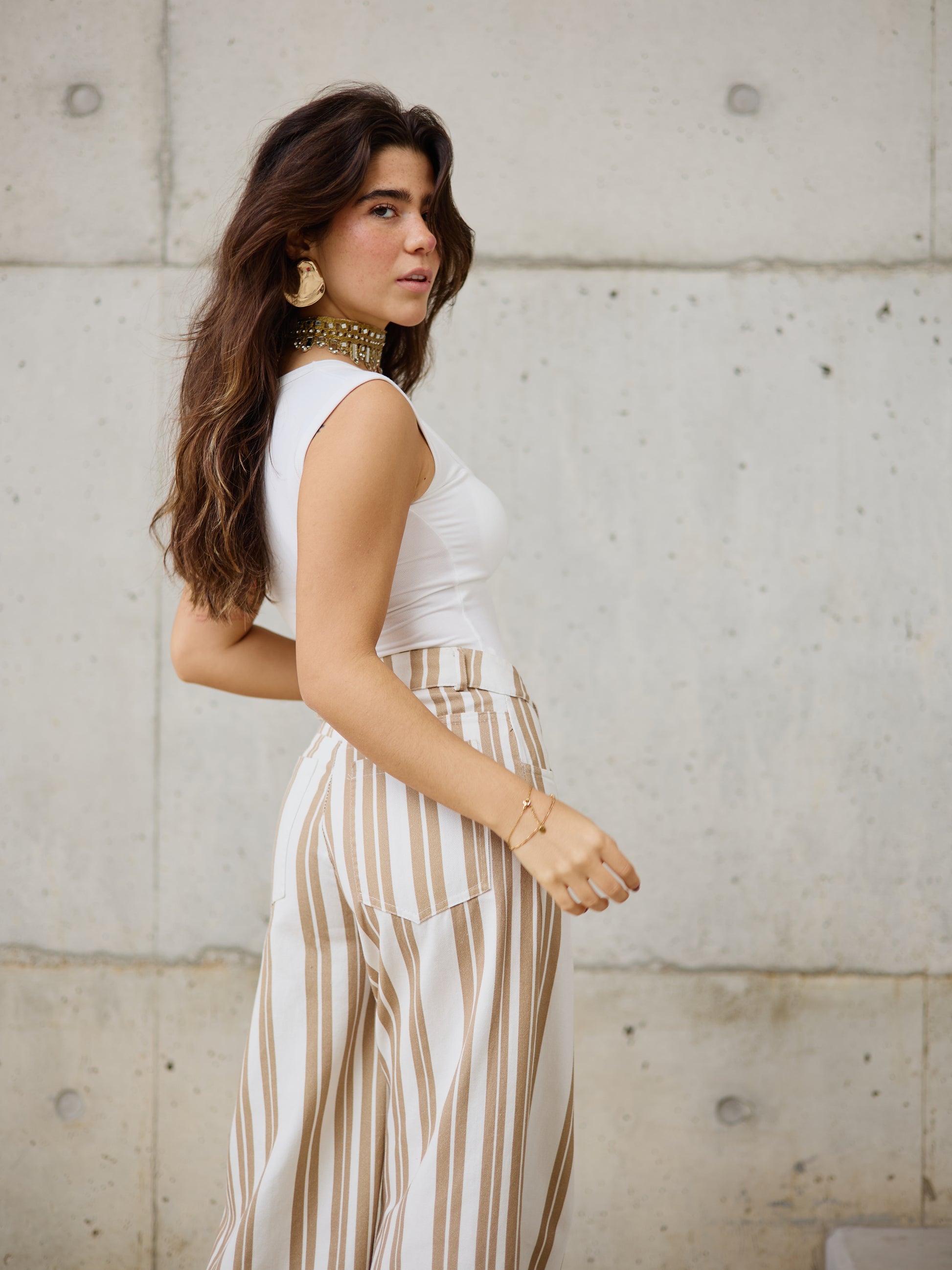 Calças Estilo Pantalona Riscas