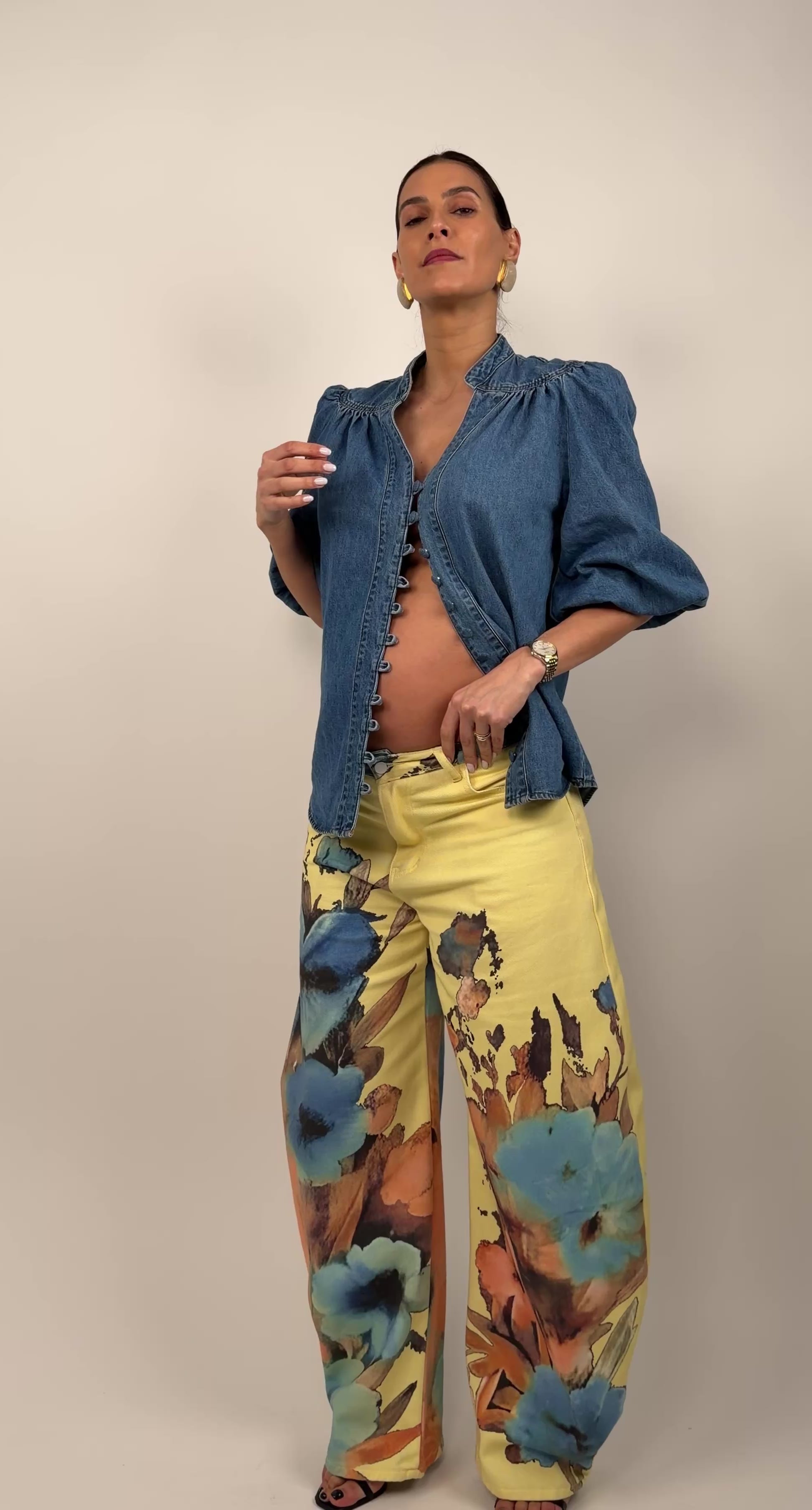 Calças Balloon Amarelas Flores