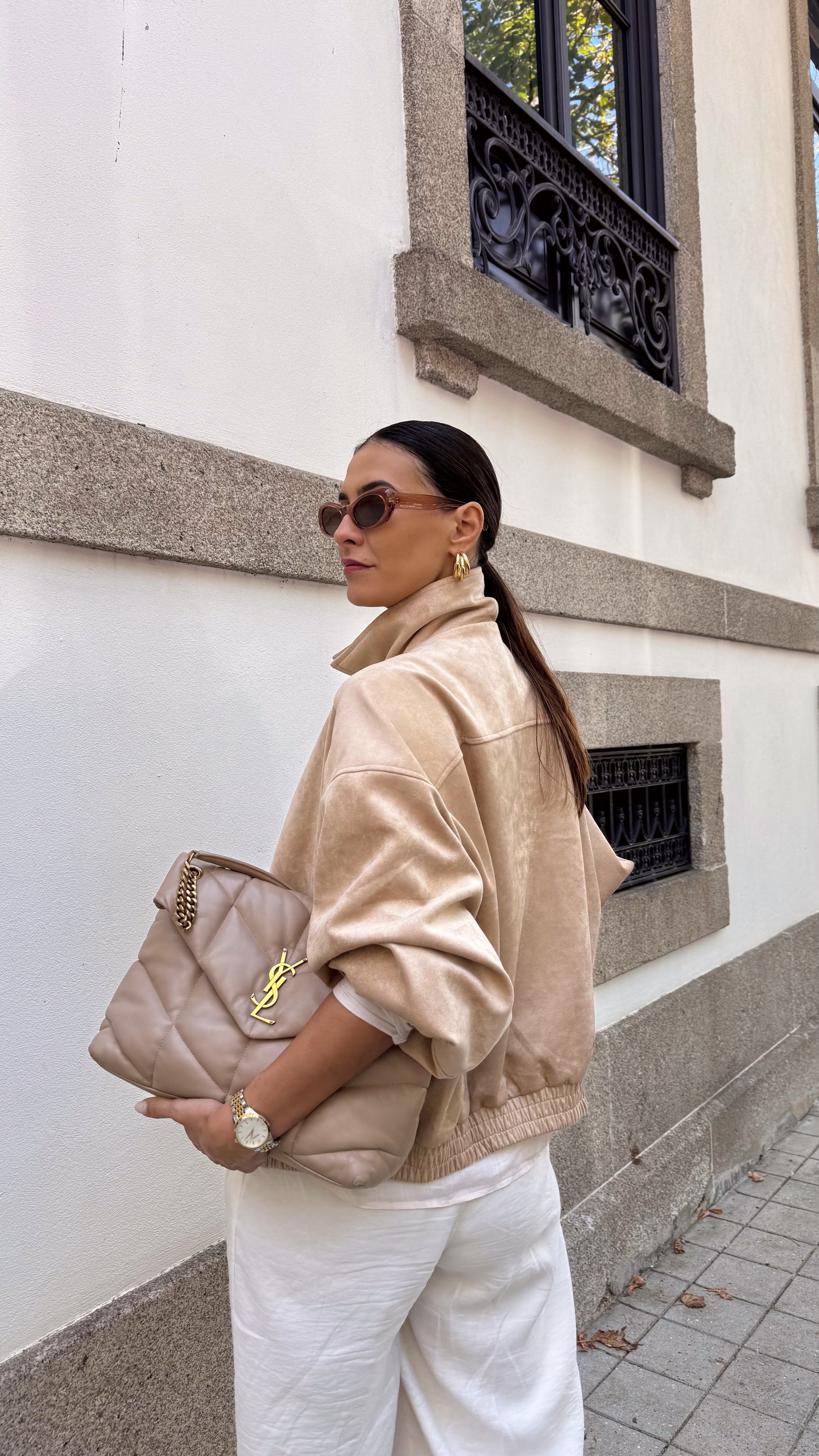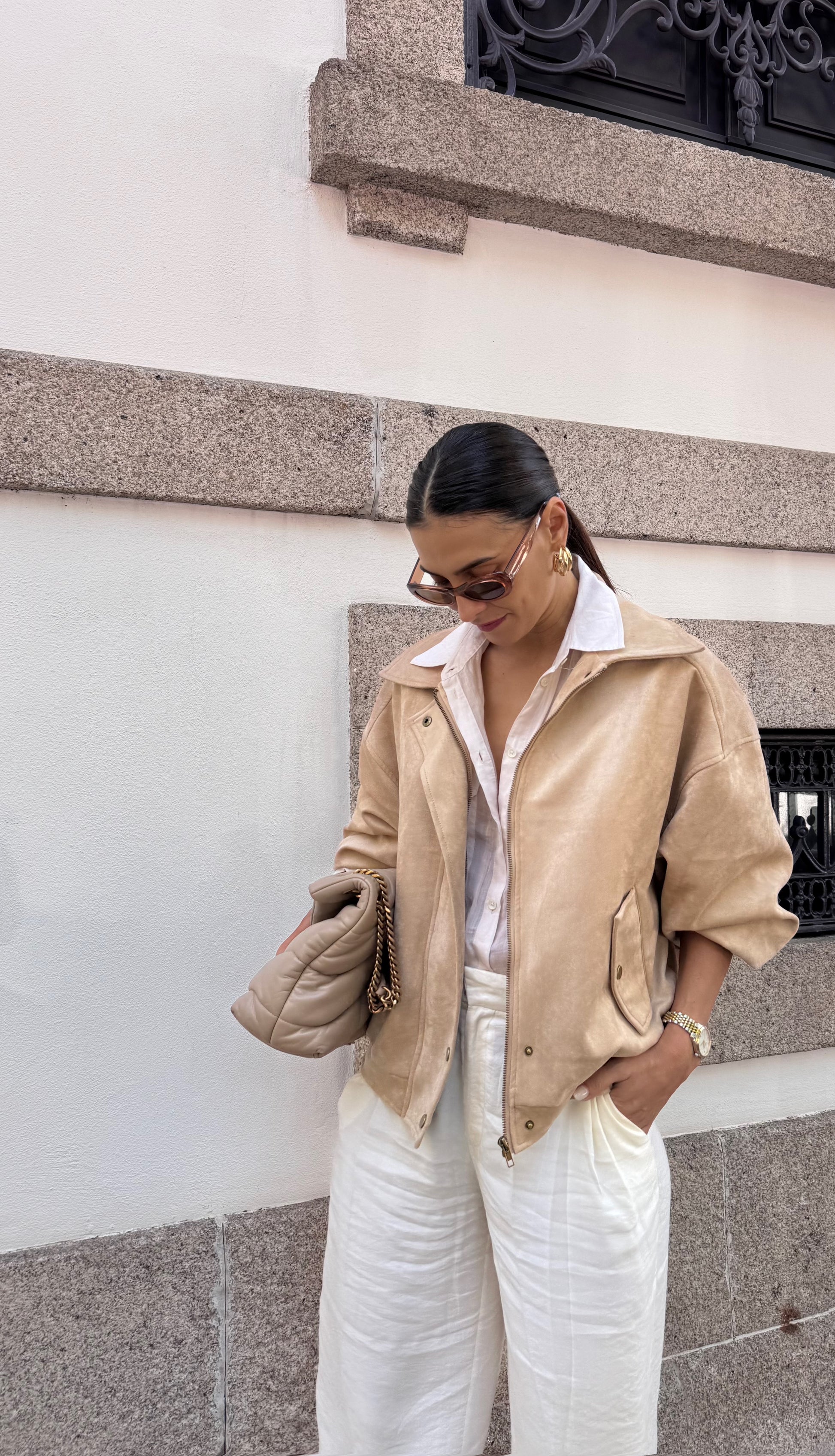 O Jacket Urban em Pele Pêssego traz caimento estruturado, é forrado, tem bolsos com lapela e botões metálicos, além de punhos ajustáveis para um toque sofisticado e urbano. Fechamento com fecho e botões mola.