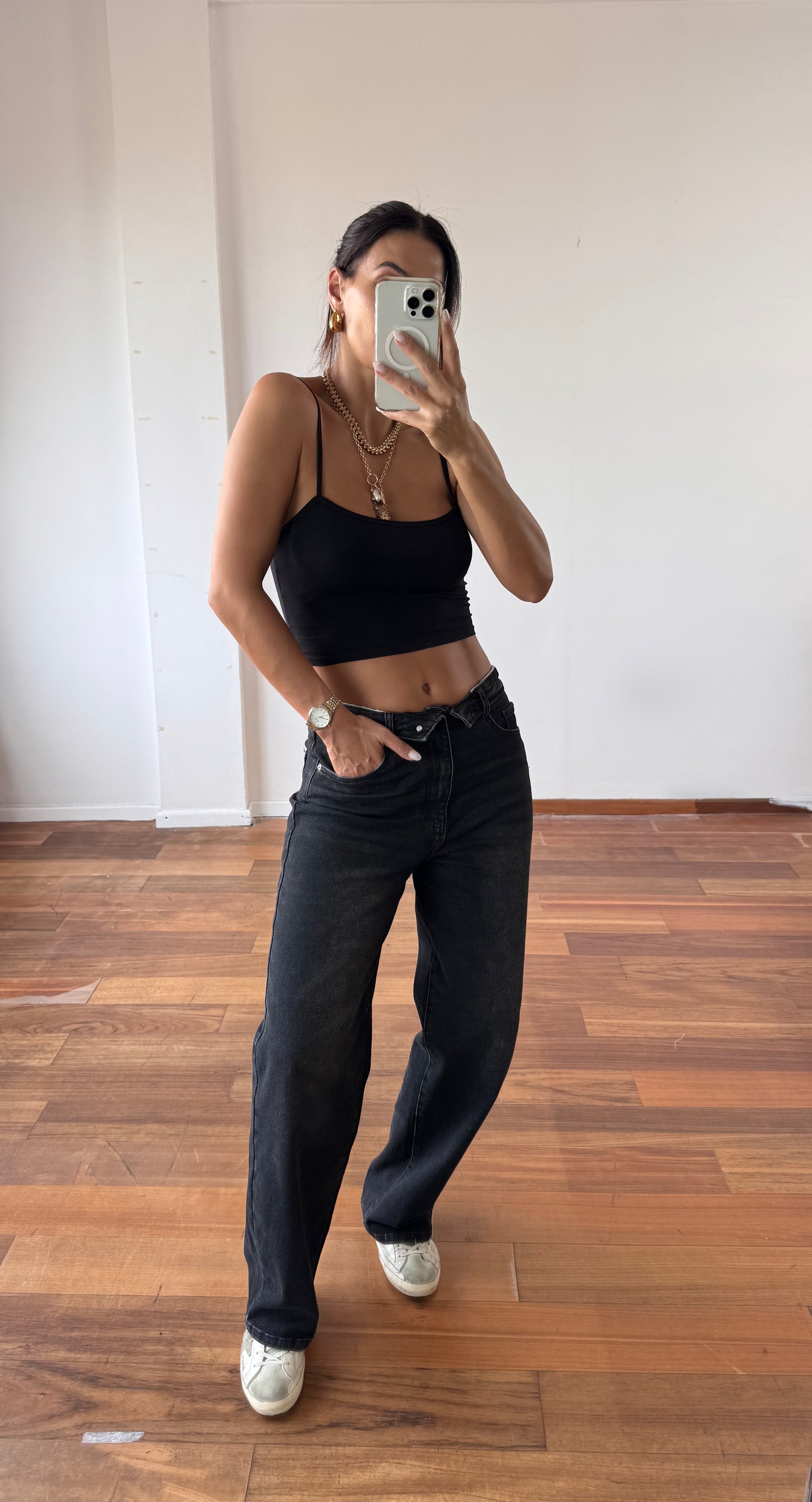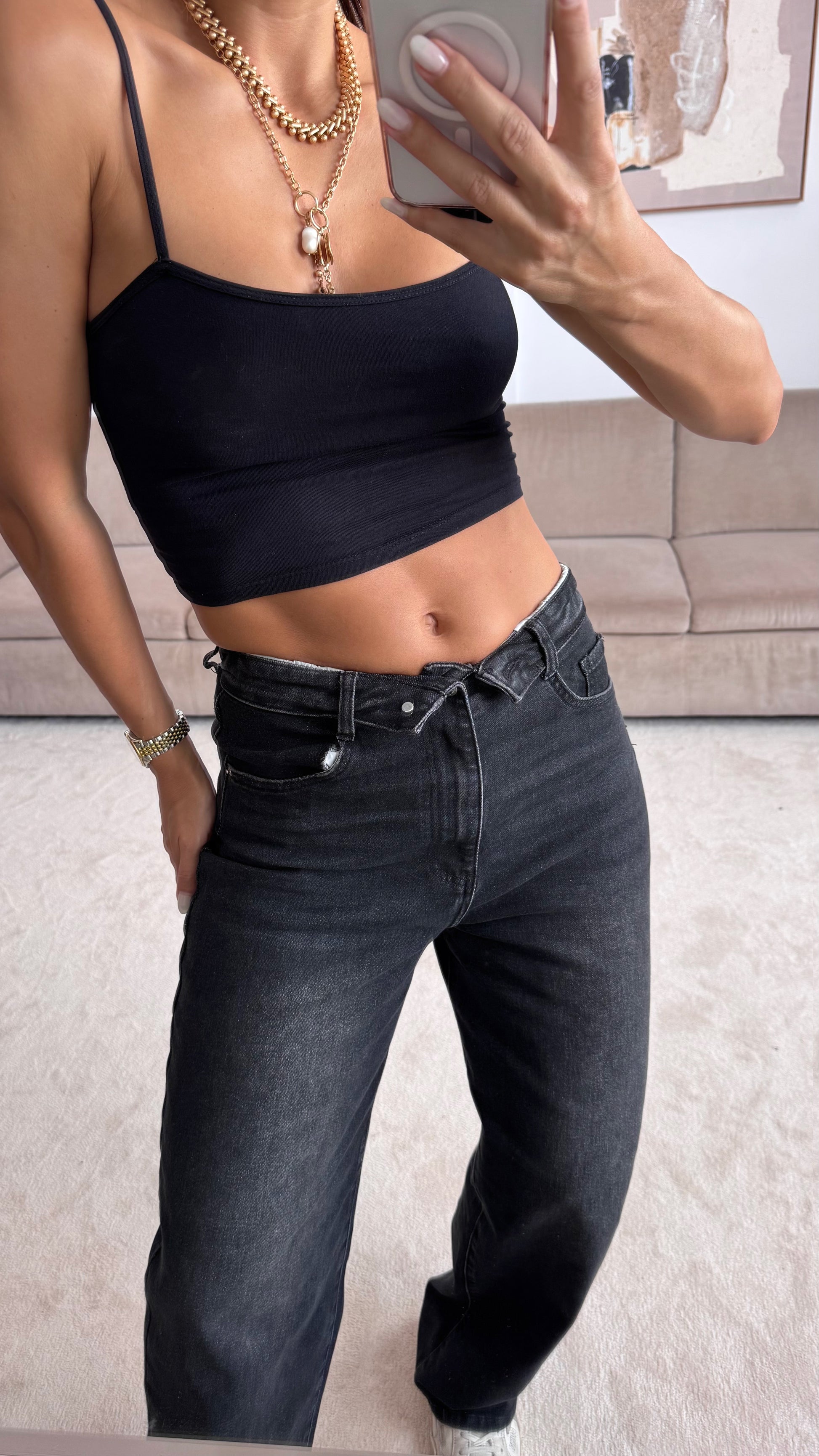 Штани з зворотною талією, широкий крій та еластичність створюють чарівний образ. зворотна талія (заправлена) що додасть вашому образу модного шарму. Покриття «стоунвошінг» надає вашому образу невимушеного вигляду, а висока талія підкреслює силует. Застібка на ґудзики та блискавку, щільна та зручна джинсова тканина. Ідеально підходить для міського, повсякденного та стильного образу.