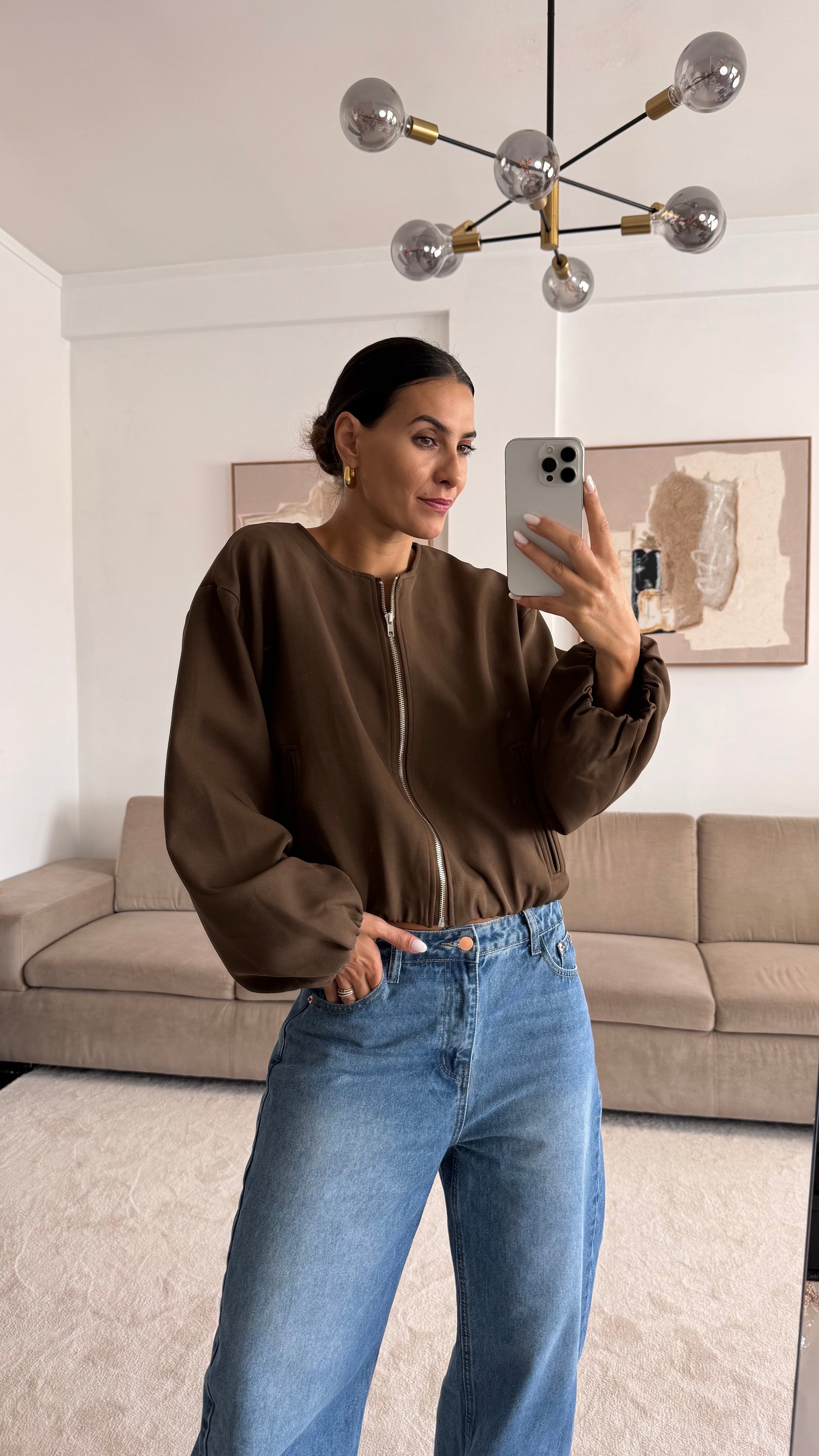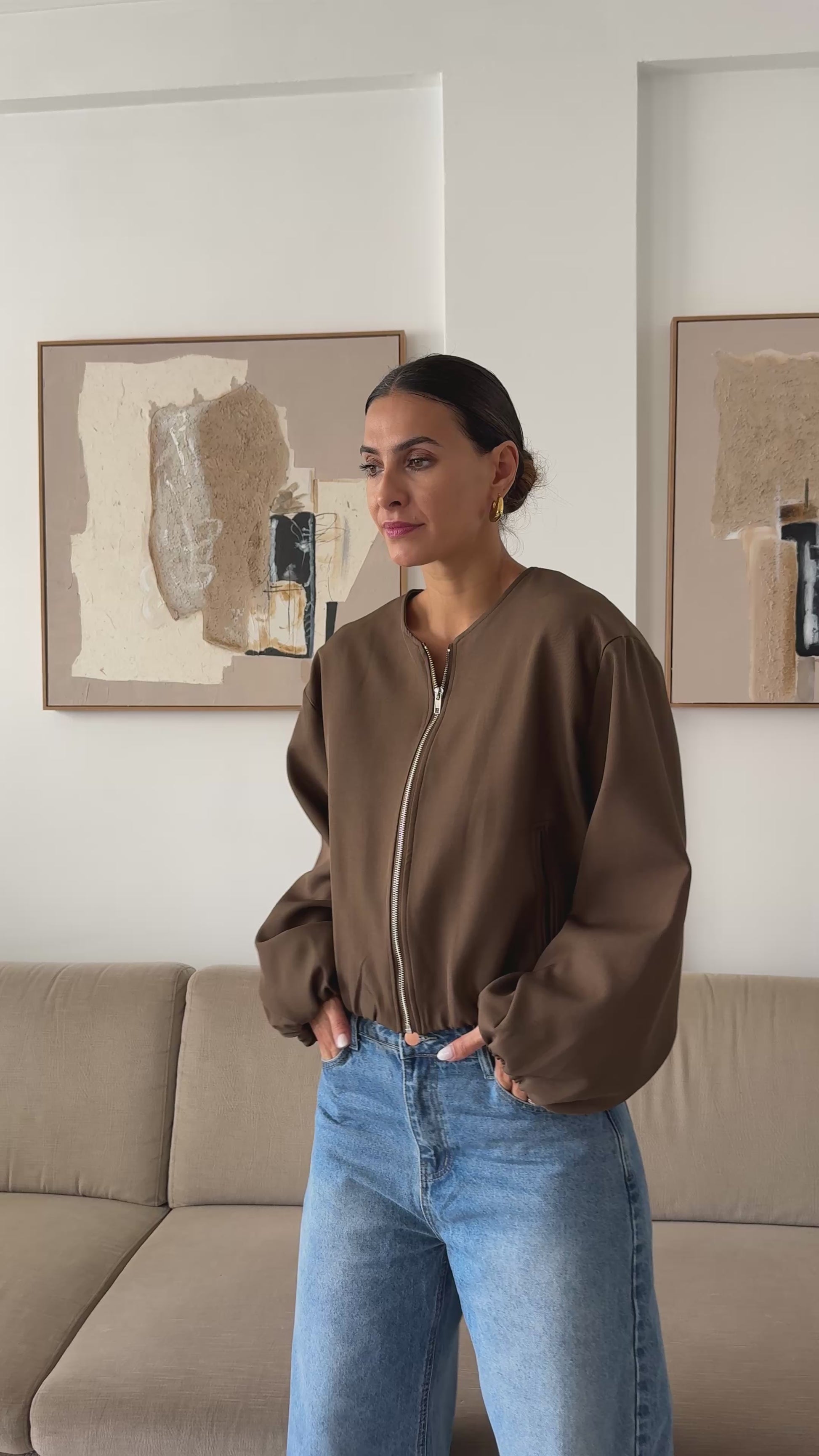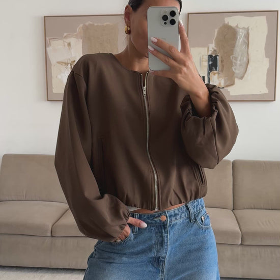 Куртка Celine має підкладку, застібку спереду, непомітні кишені та еластичний подол, поєднуючи комфорт та стиль в одному виробі.