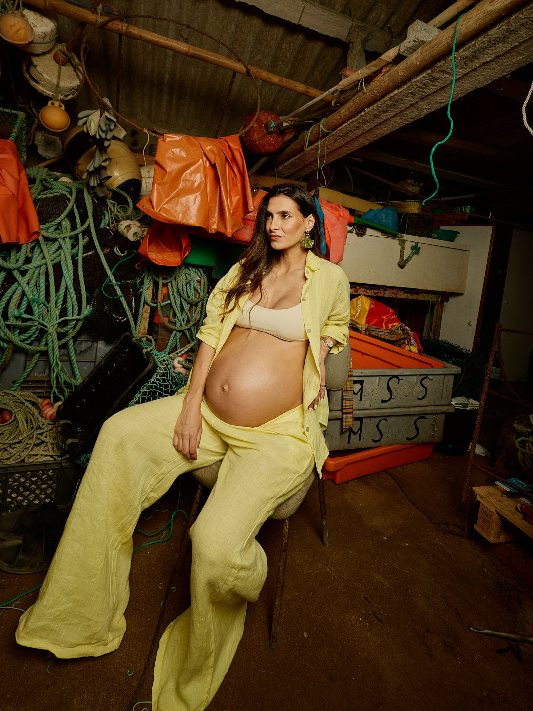 Cada peça em linho é tingida manualmente, tornando cada conjunto único. Pequenas variações de tom entre o top e as calças podem ocorrer naturalmente, refletindo o processo artesanal.