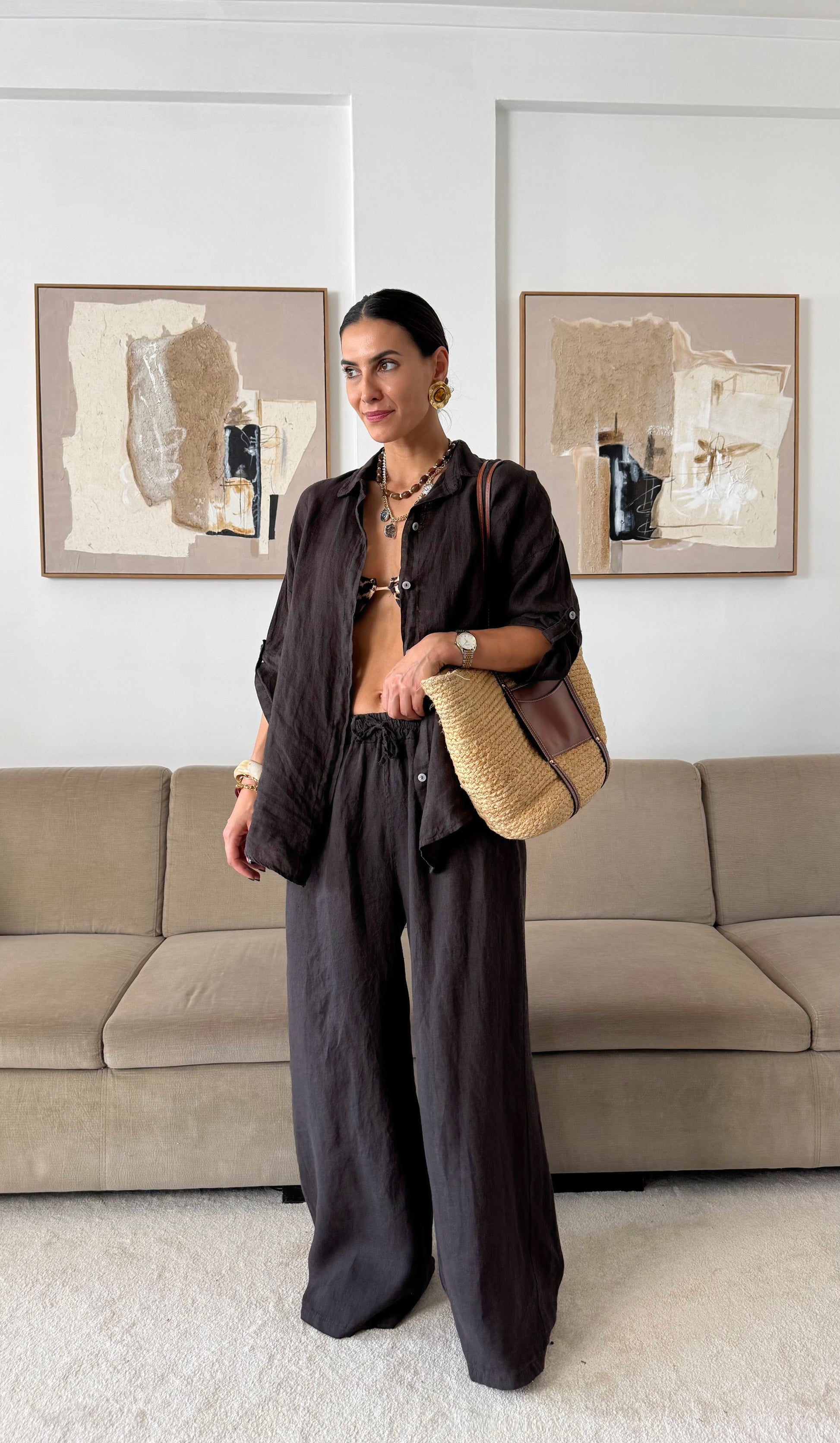 Conjunto Camisa Linho Castanho